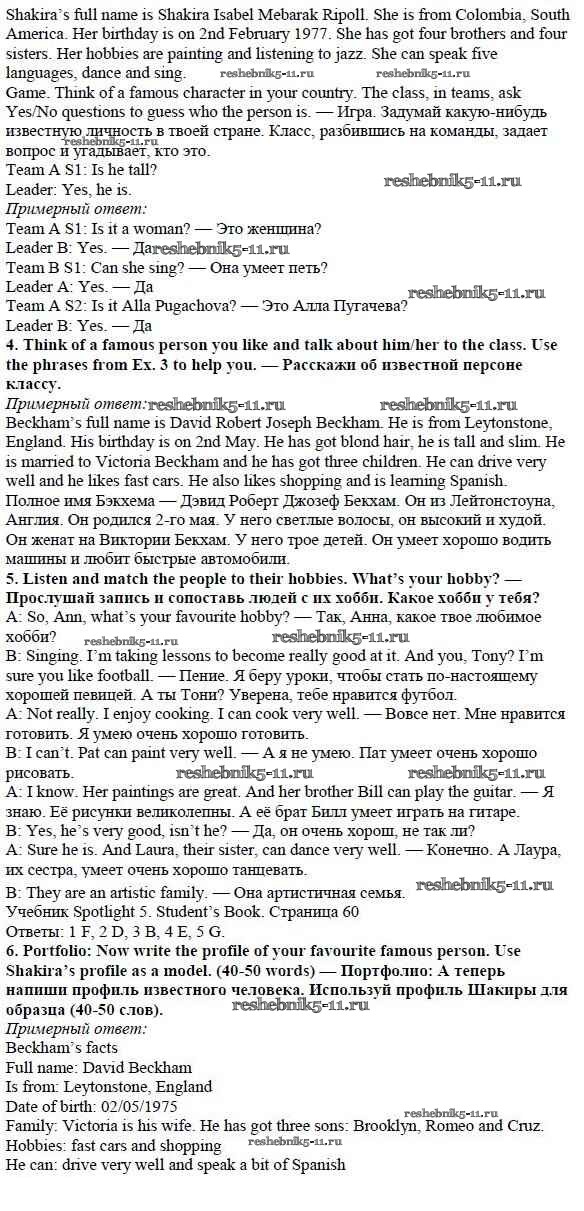 Английский язык за 5 класс Ваулина Учебник Spotlight Просвещение module 4 стр. 60