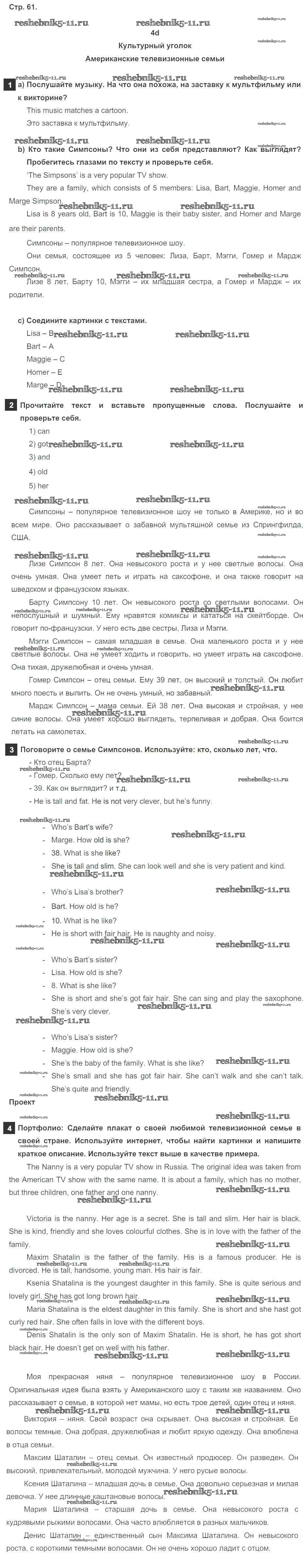 Готовая домашняя работа с ответами по Английскому языку за 5 класс Ваулина, Дули, Подоляко, Эванск Учебник Spotlight Просвещение 2015 ФГОС - Module 4. Family ties стр. 61