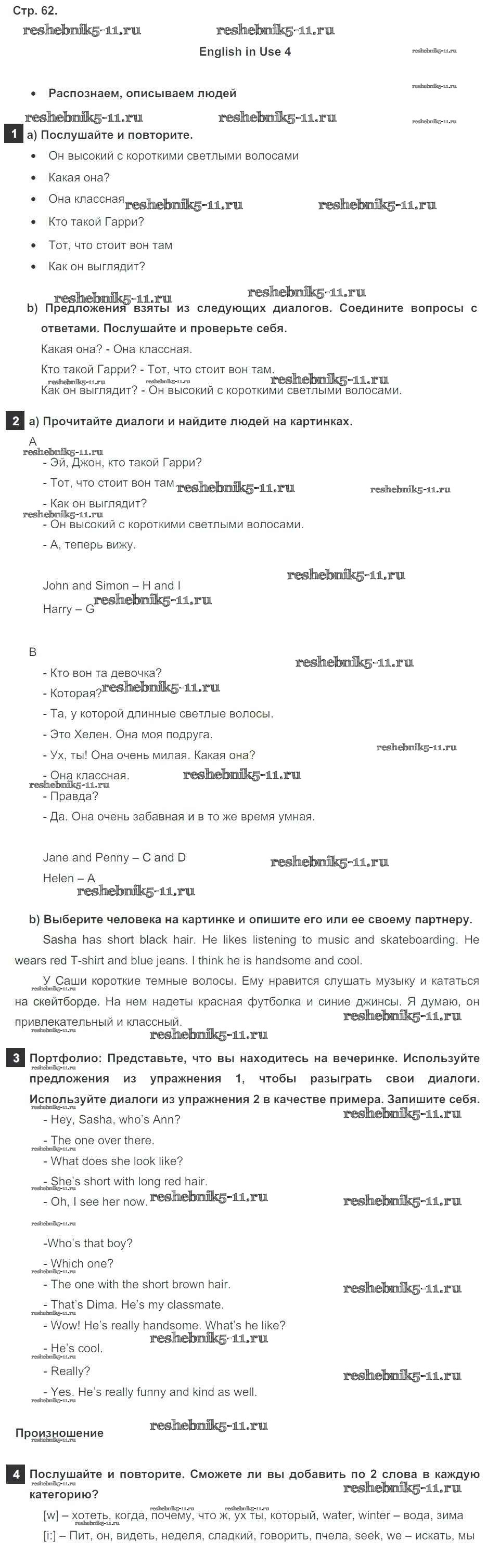 Английский язык за 5 класс Ваулина Учебник Spotlight Просвещение module 4 стр. 62