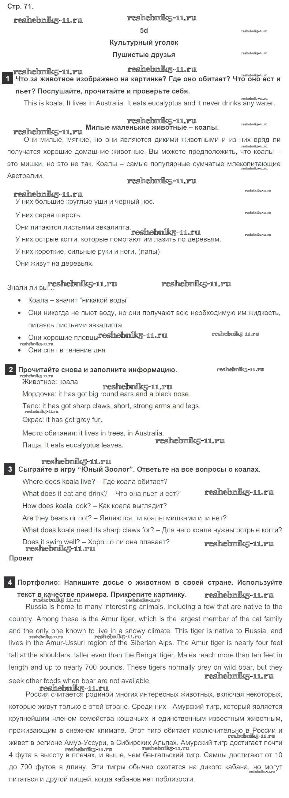 Готовая домашняя работа с ответами по Английскому языку за 5 класс Ваулина, Дули, Подоляко, Эванск Учебник Spotlight Просвещение 2015 ФГОС - Module 5. World animals стр. 71
