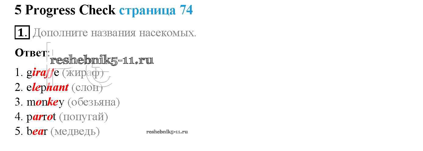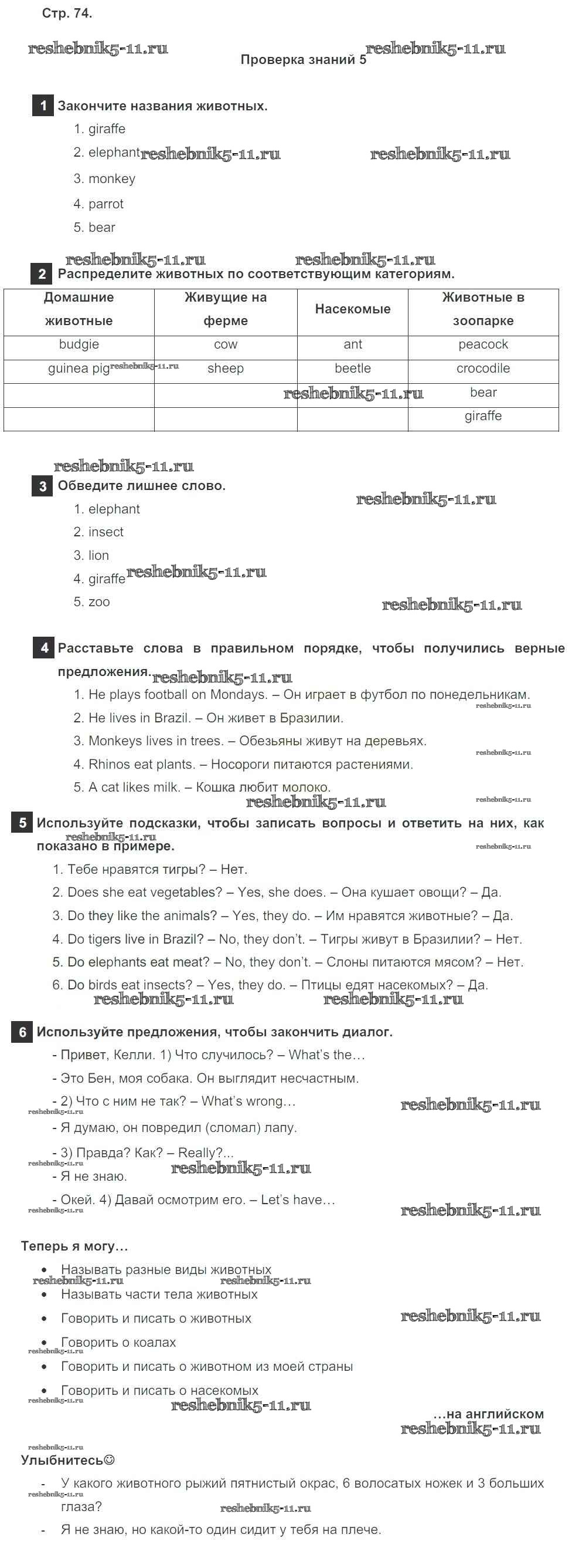 Готовая домашняя работа с ответами по Английскому языку за 5 класс Ваулина, Дули, Подоляко, Эванск Учебник Spotlight Просвещение 2015 ФГОС - Module 5. World animals стр. 74