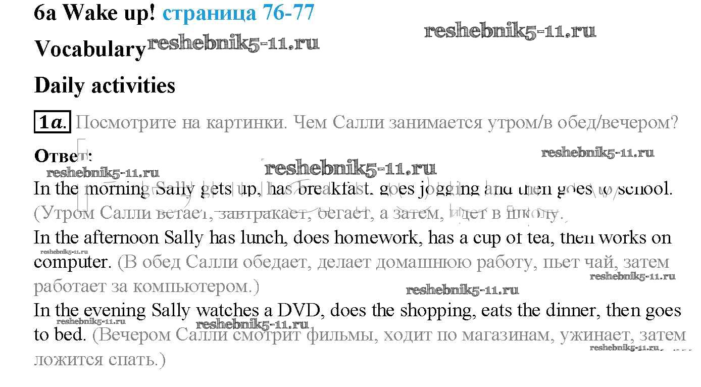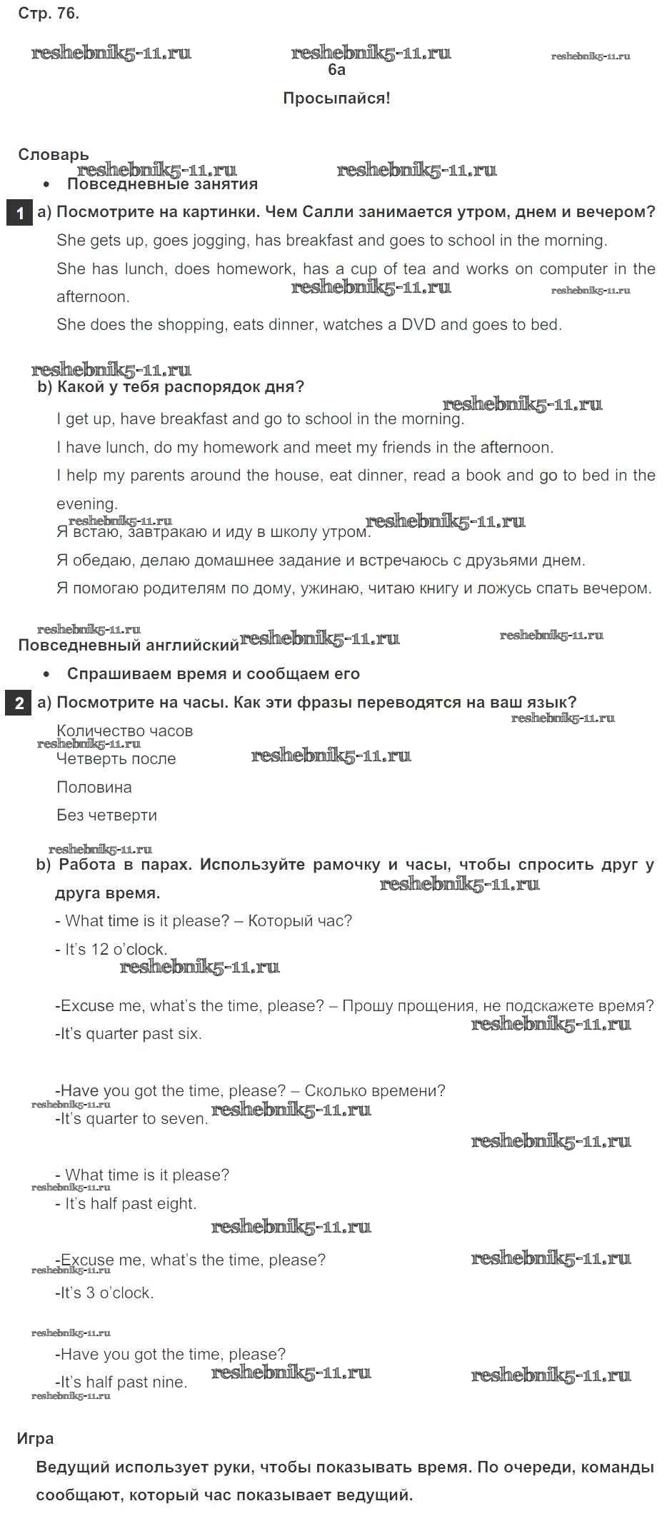Готовая домашняя работа с ответами по Английскому языку за 5 класс Ваулина, Дули, Подоляко, Эванск Учебник Spotlight Просвещение 2015 ФГОС - Module 6. Round the clock стр. 76