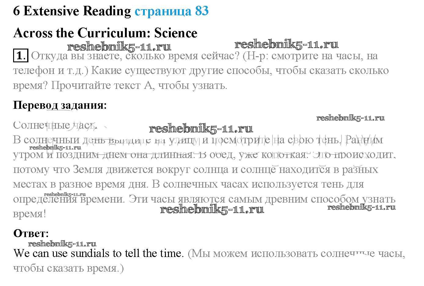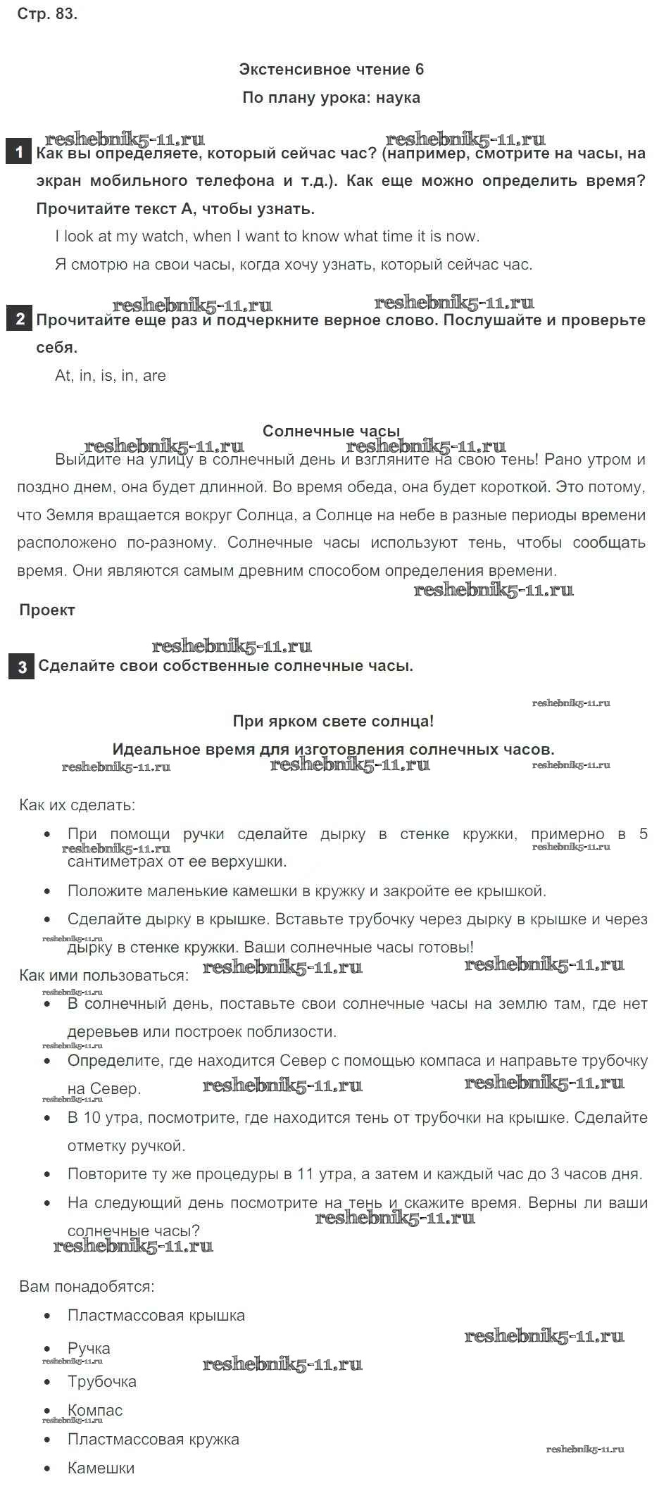 Готовая домашняя работа с ответами по Английскому языку за 5 класс Ваулина, Дули, Подоляко, Эванск Учебник Spotlight Просвещение 2015 ФГОС - Module 6. Round the clock стр. 83