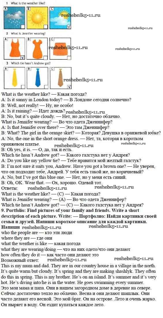 Готовая домашняя работа с ответами по Английскому языку за 5 класс Ваулина, Дули, Подоляко, Эванск Учебник Spotlight Просвещение 2015 ФГОС - Module 7. In all weathers стр. 89