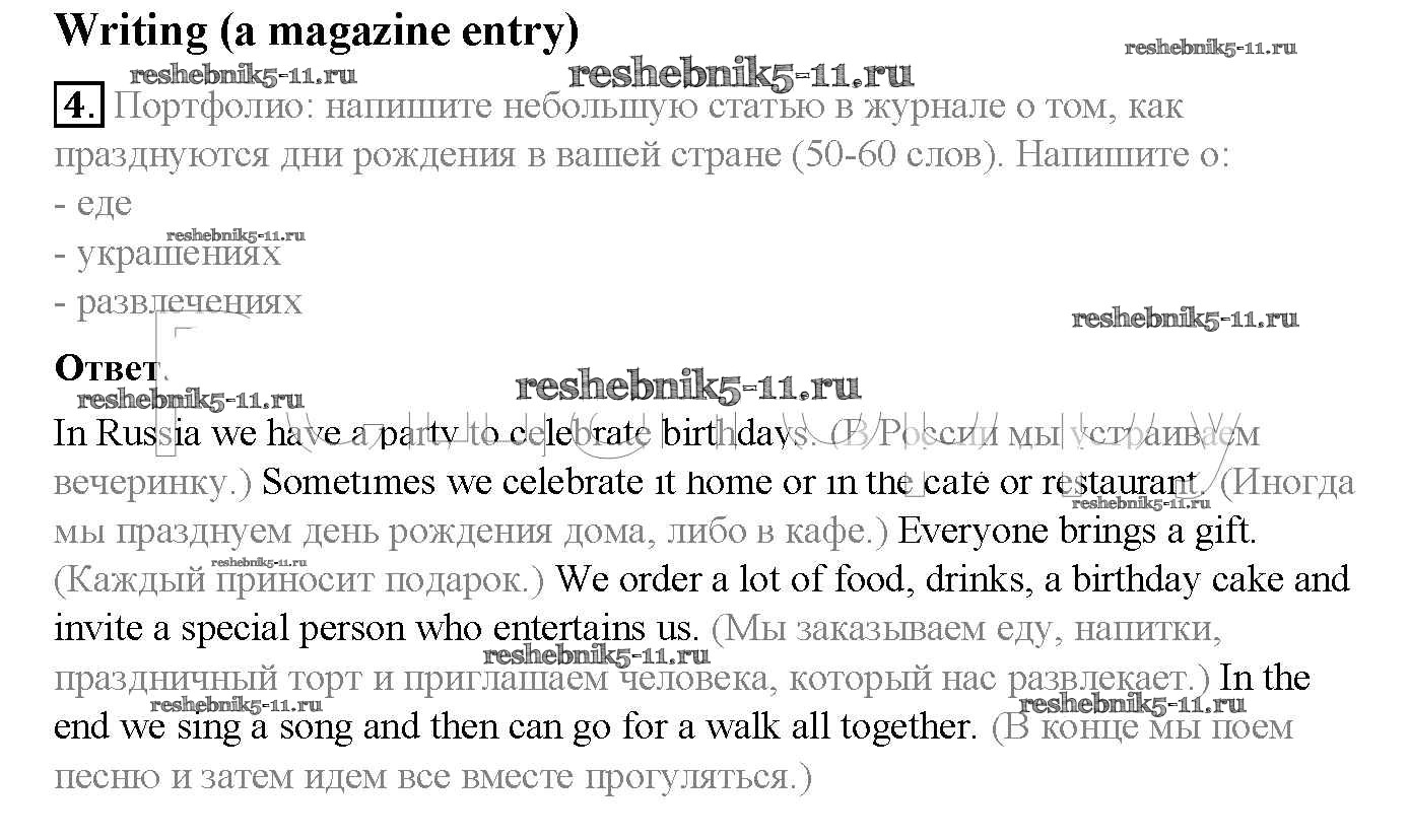 Готовая домашняя работа с ответами по Английскому языку за 5 класс Ваулина, Дули, Подоляко, Эванск Учебник Spotlight Просвещение 2015 ФГОС - Module 8. Special days стр. 100
