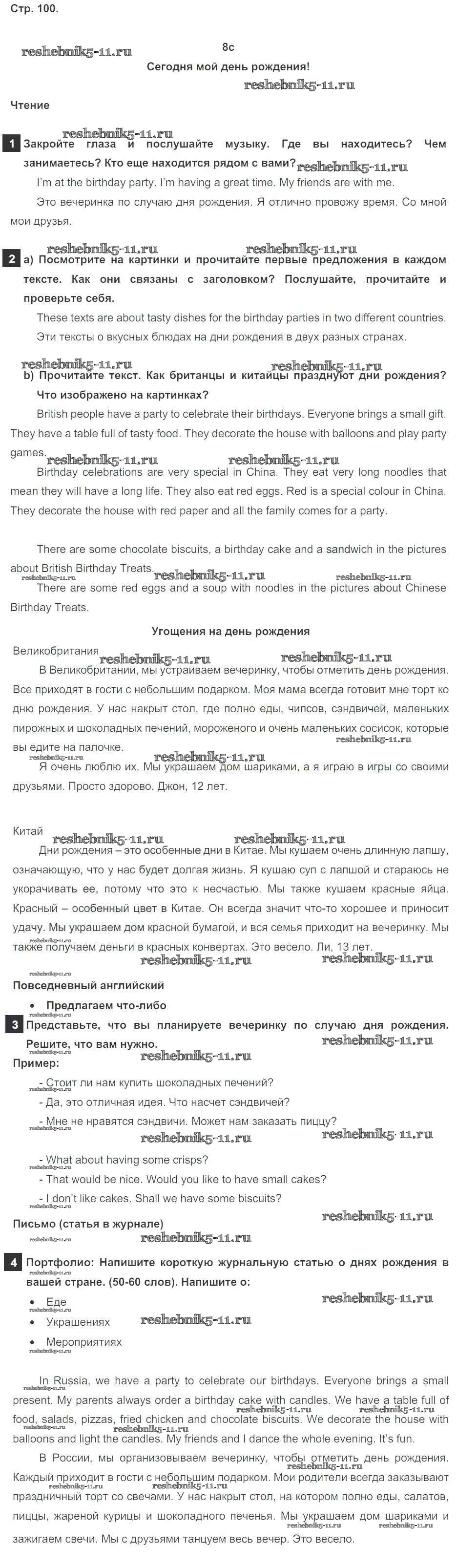 Английский язык за 5 класс Ваулина Учебник Spotlight Просвещение module 8 стр. 100