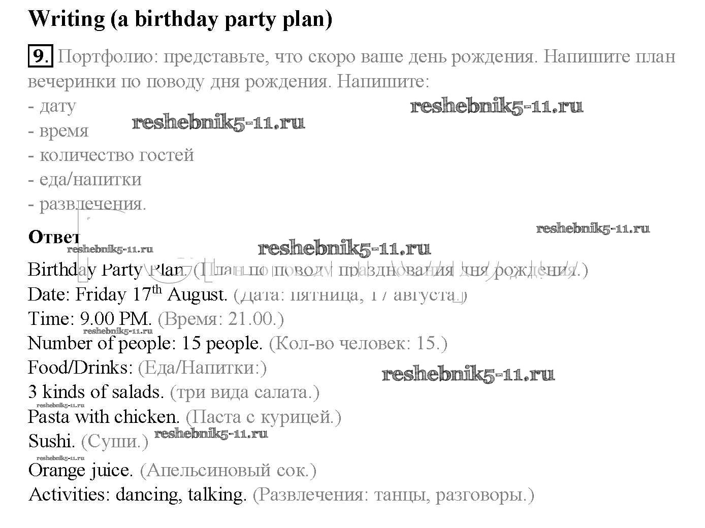 Готовая домашняя работа с ответами по Английскому языку за 5 класс Ваулина, Дули, Подоляко, Эванск Учебник Spotlight Просвещение 2015 ФГОС - Module 8. Special days стр. 99