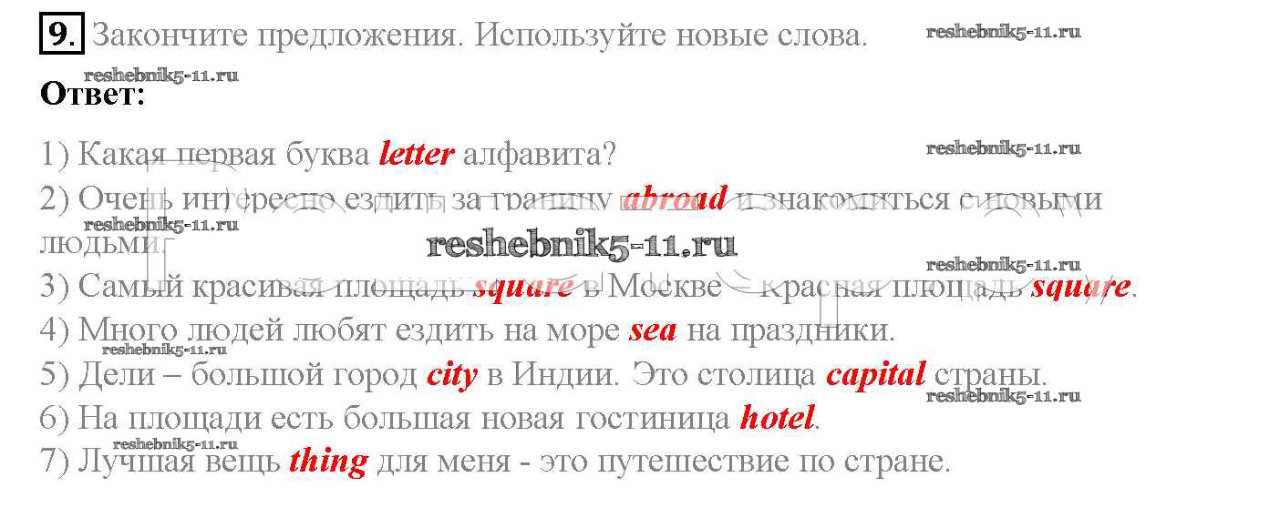 Готовая домашняя работа с ответами по Английскому языку за 5 класс Афанасьева, Михеева, Баранова Учебник Rainbow Часть 1, 2 Дрофа 2017 ФГОС - Step 5 9