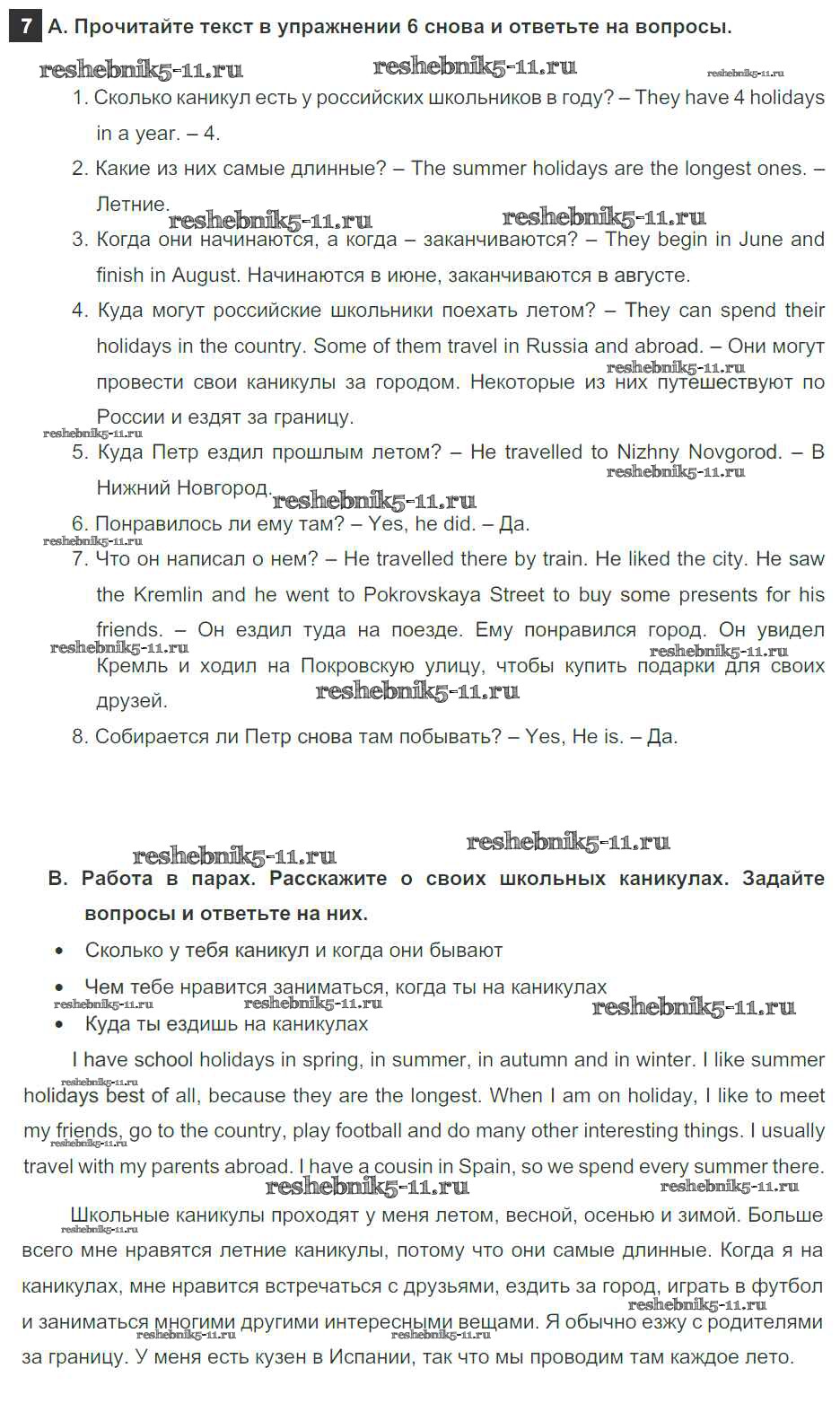 Готовая домашняя работа с ответами по Английскому языку за 5 класс Афанасьева, Михеева, Баранова Учебник Rainbow Часть 1, 2 Дрофа 2017 ФГОС - Step 7 7