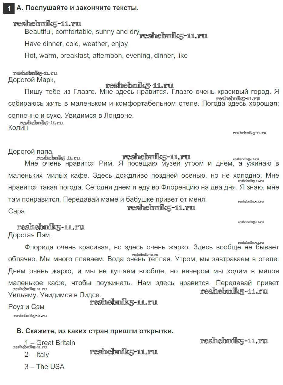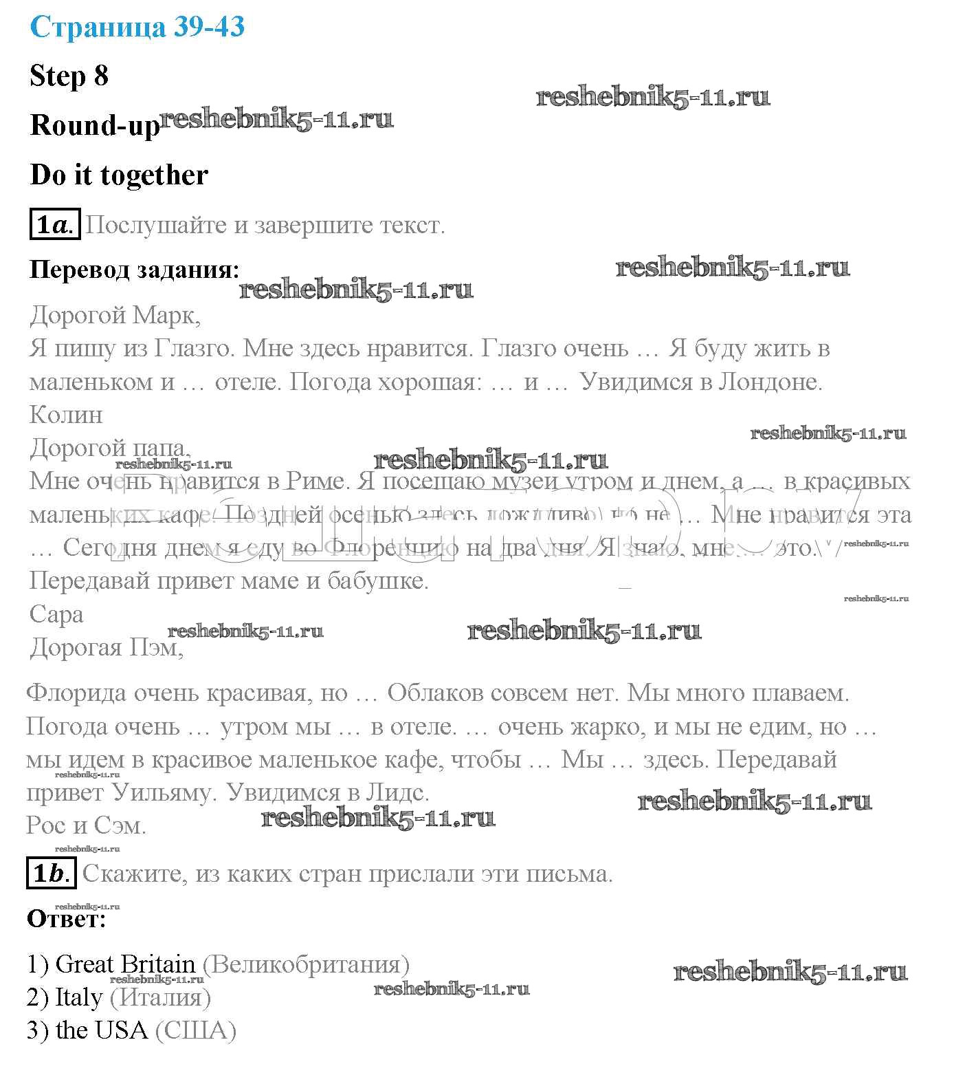 Готовая домашняя работа с ответами по Английскому языку за 5 класс Афанасьева, Михеева, Баранова Учебник Rainbow Часть 1, 2 Дрофа 2017 ФГОС - Step 8. Round-up 1