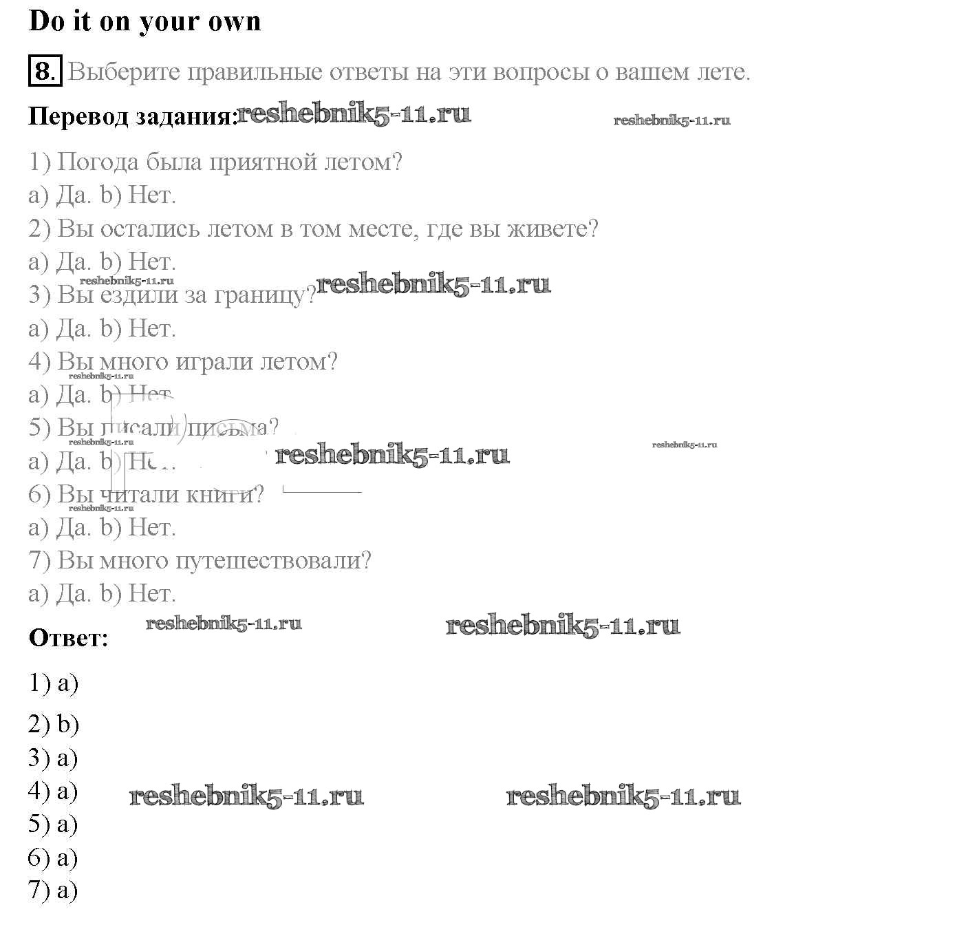 Готовая домашняя работа с ответами по Английскому языку за 5 класс Афанасьева, Михеева, Баранова Учебник Rainbow Часть 1, 2 Дрофа 2017 ФГОС - Step 8. Round-up 8