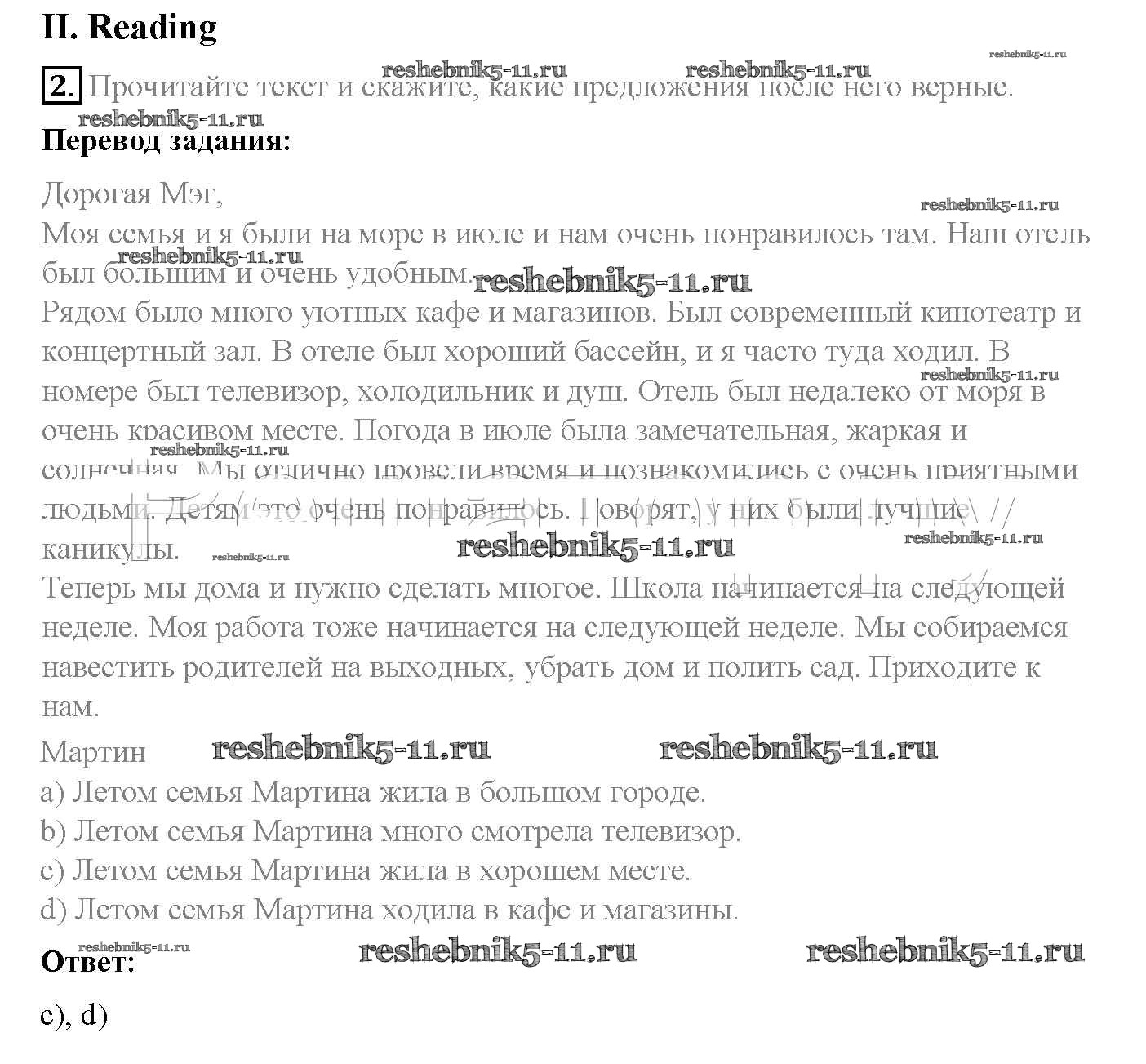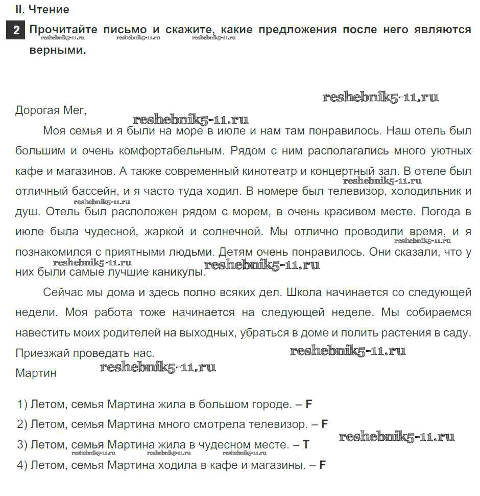 Готовая домашняя работа с ответами по Английскому языку за 5 класс Афанасьева, Михеева, Баранова Учебник Rainbow Часть 1, 2 Дрофа 2017 ФГОС - Step 9. Test Yourself 2