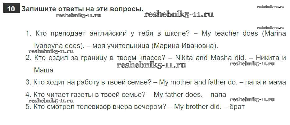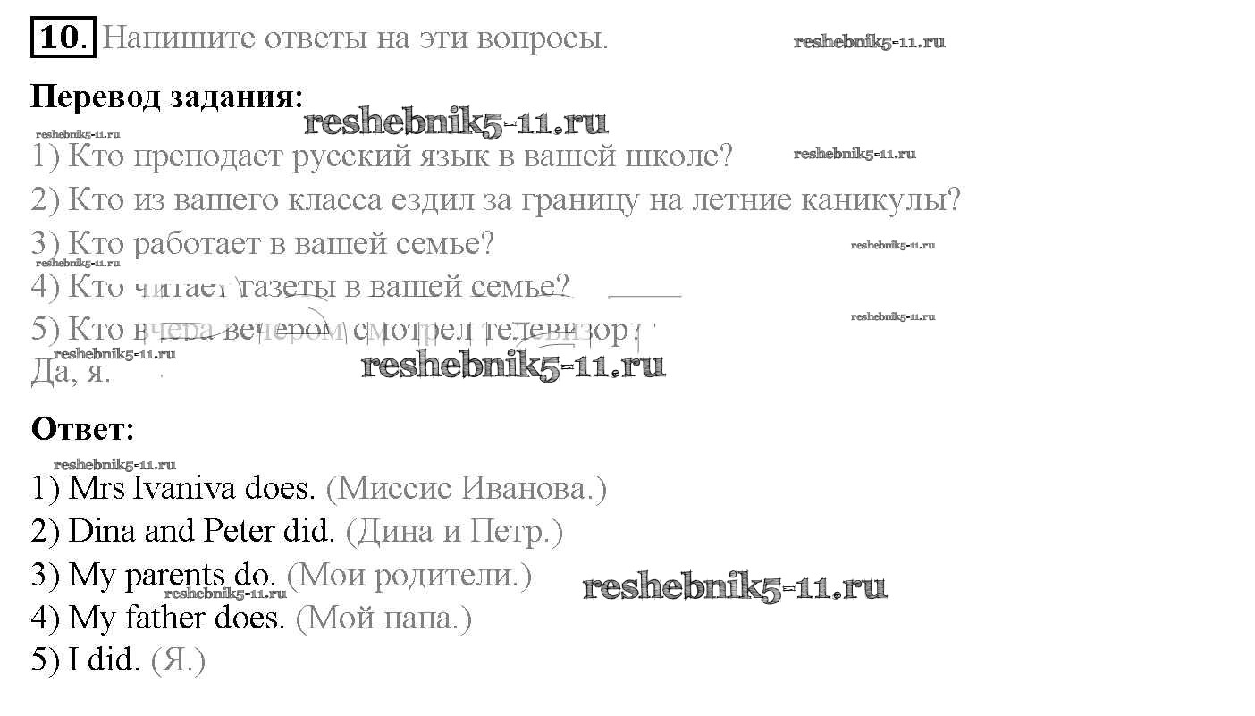 Готовая домашняя работа с ответами по Английскому языку за 5 класс Афанасьева, Михеева, Баранова Учебник Rainbow Часть 1, 2 Дрофа 2017 ФГОС - Step 2 10