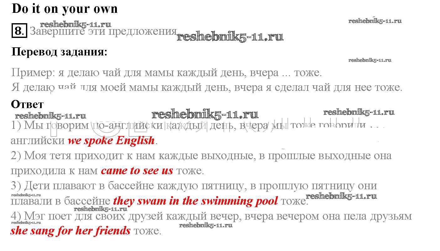 Готовая домашняя работа с ответами по Английскому языку за 5 класс Афанасьева, Михеева, Баранова Учебник Rainbow Часть 1, 2 Дрофа 2017 ФГОС - Step 2 8