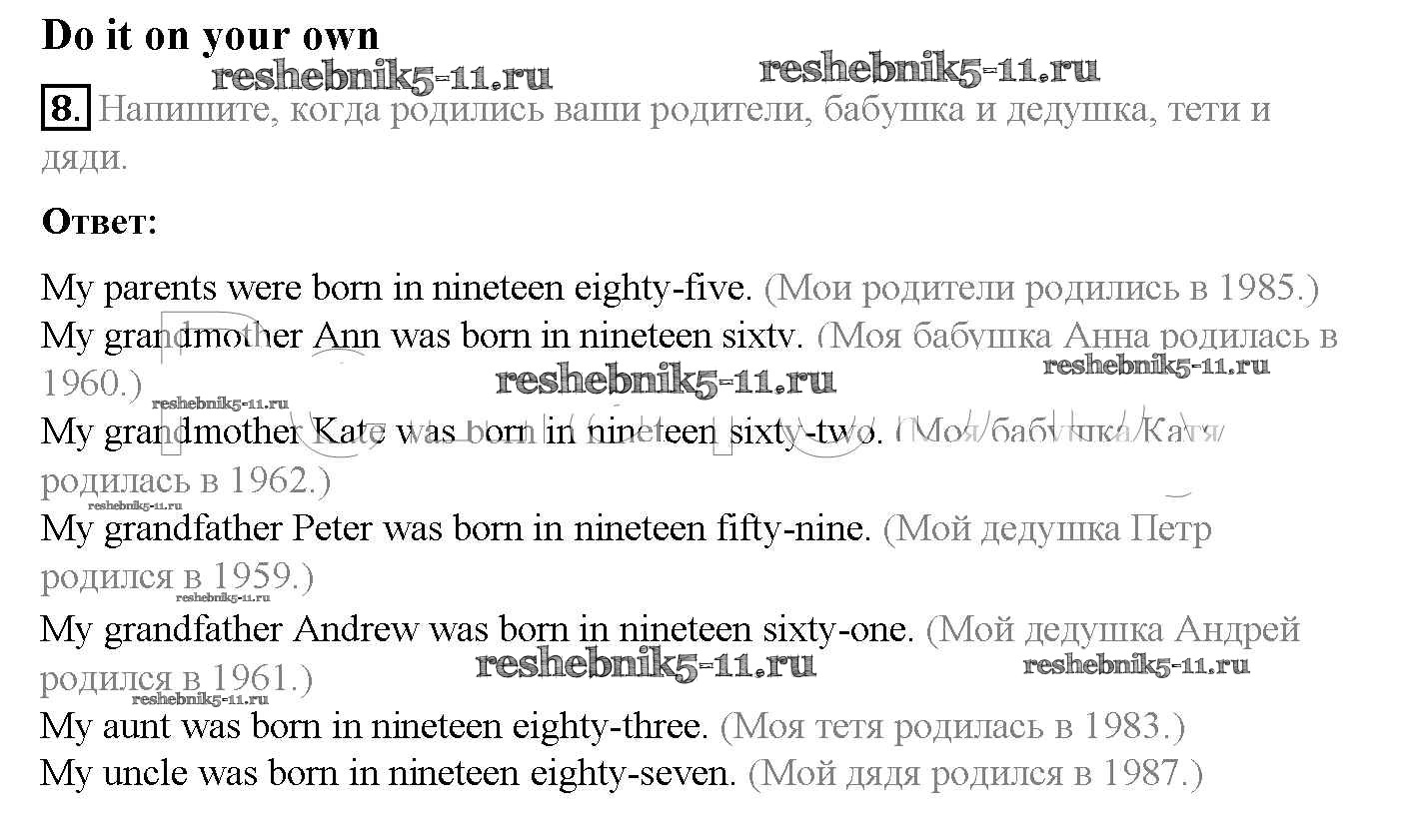 Готовая домашняя работа с ответами по Английскому языку за 5 класс Афанасьева, Михеева, Баранова Учебник Rainbow Часть 1, 2 Дрофа 2017 ФГОС - Step 3 8