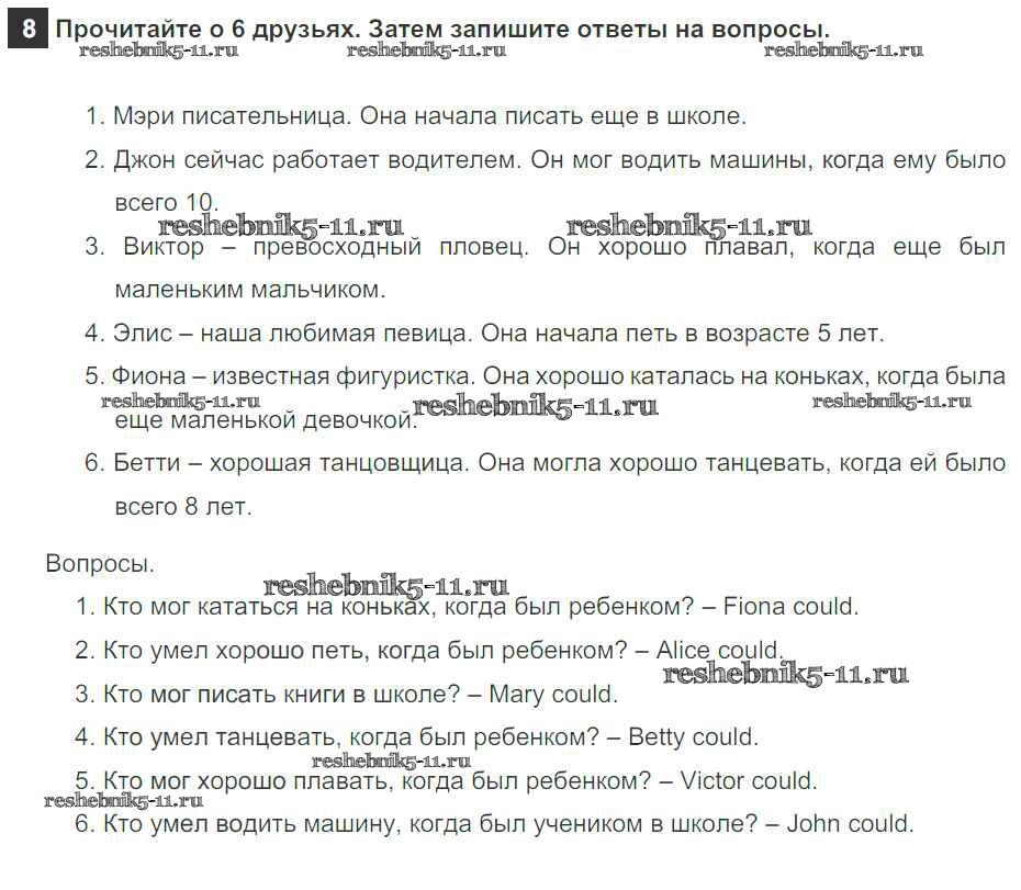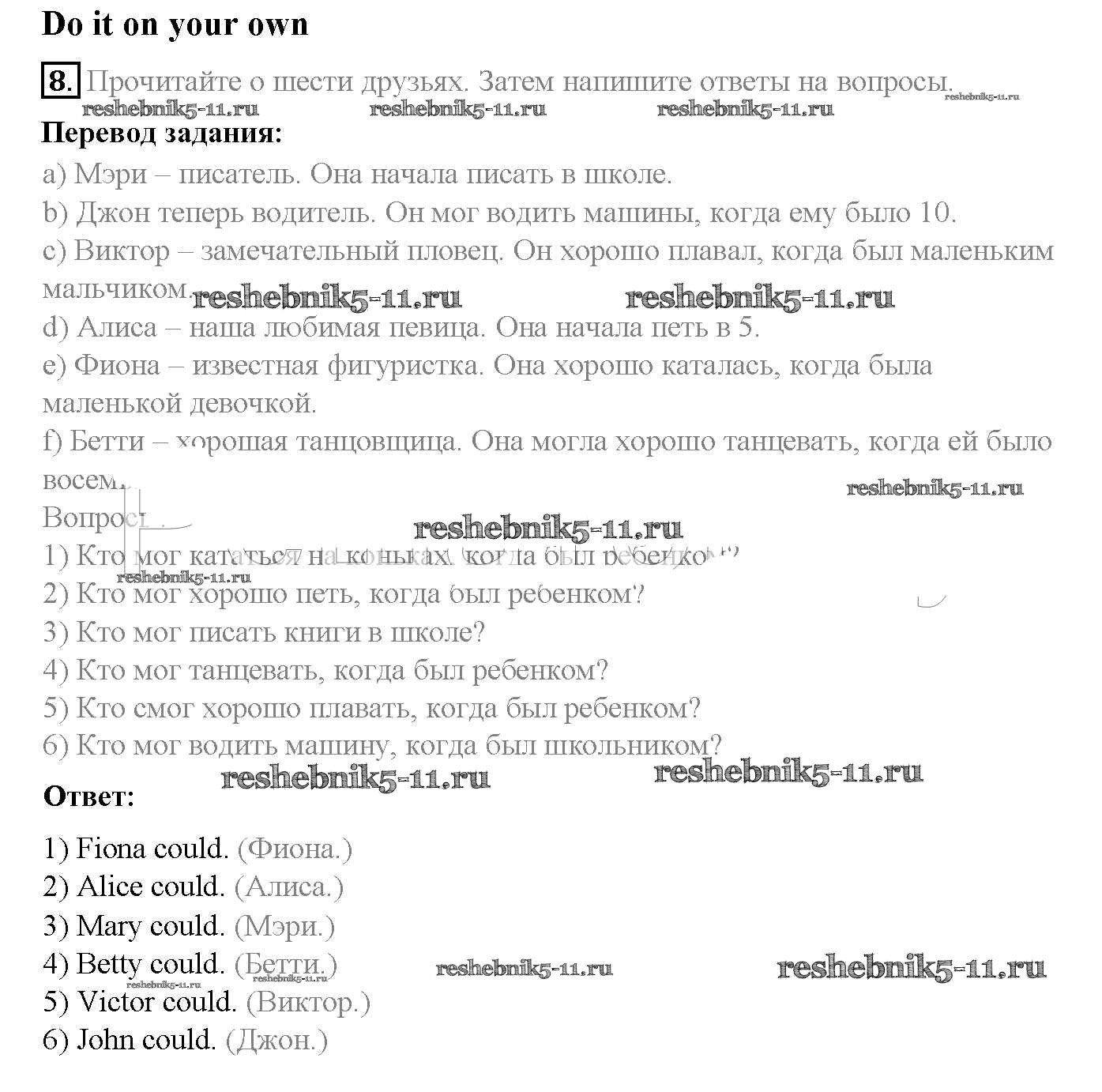 Готовая домашняя работа с ответами по Английскому языку за 5 класс Афанасьева, Михеева, Баранова Учебник Rainbow Часть 1, 2 Дрофа 2017 ФГОС - Step 5 8
