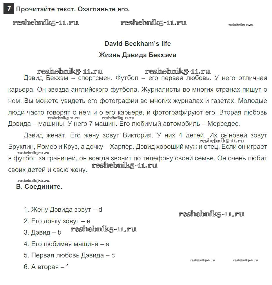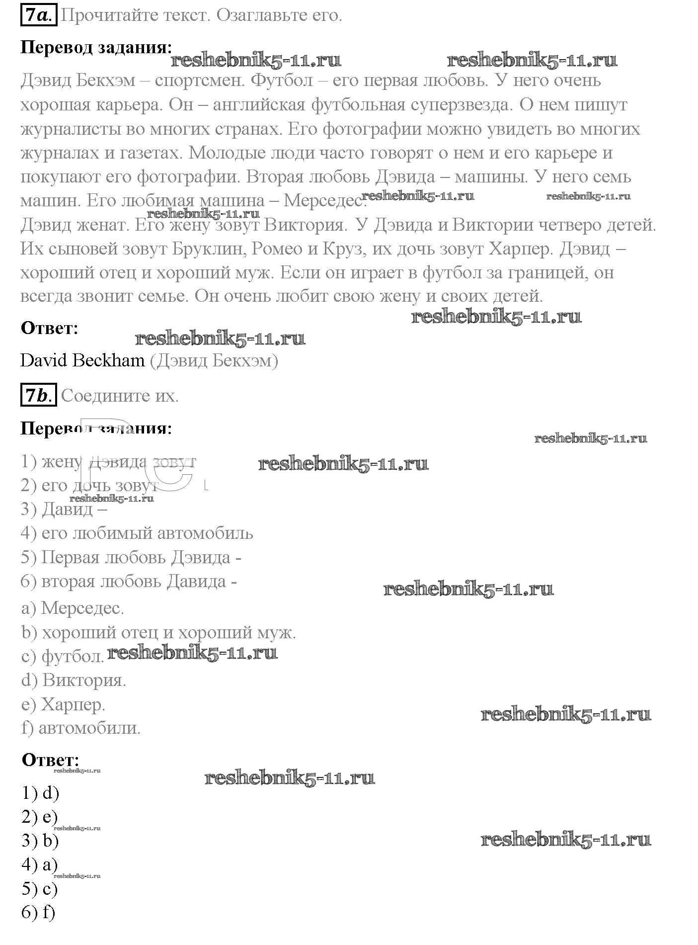 Готовая домашняя работа с ответами по Английскому языку за 5 класс Афанасьева, Михеева, Баранова Учебник Rainbow Часть 1, 2 Дрофа 2017 ФГОС - Step 7 7