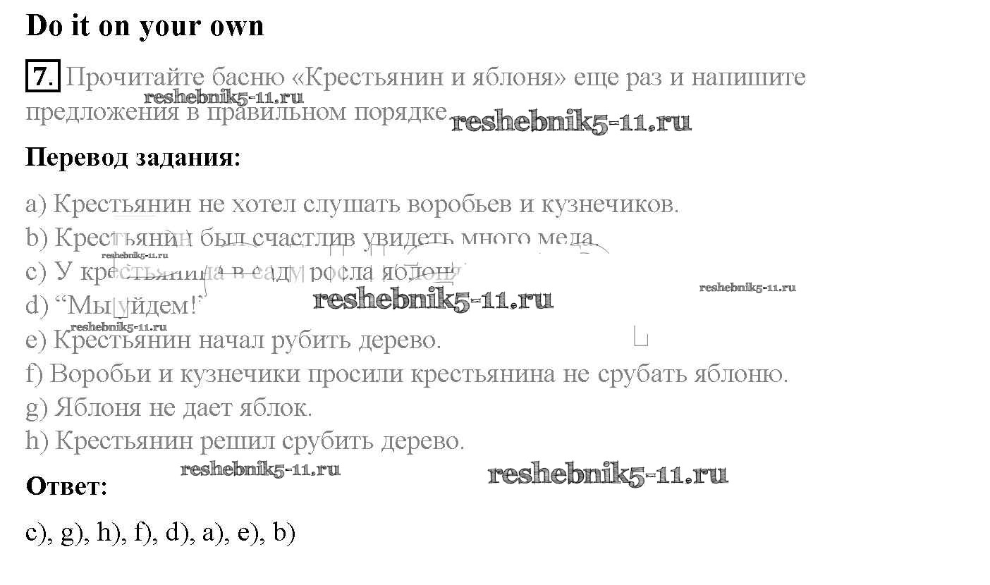 Готовая домашняя работа с ответами по Английскому языку за 5 класс Афанасьева, Михеева, Баранова Учебник Rainbow Часть 1, 2 Дрофа 2017 ФГОС - Step 10. Enjoy Yourself 7