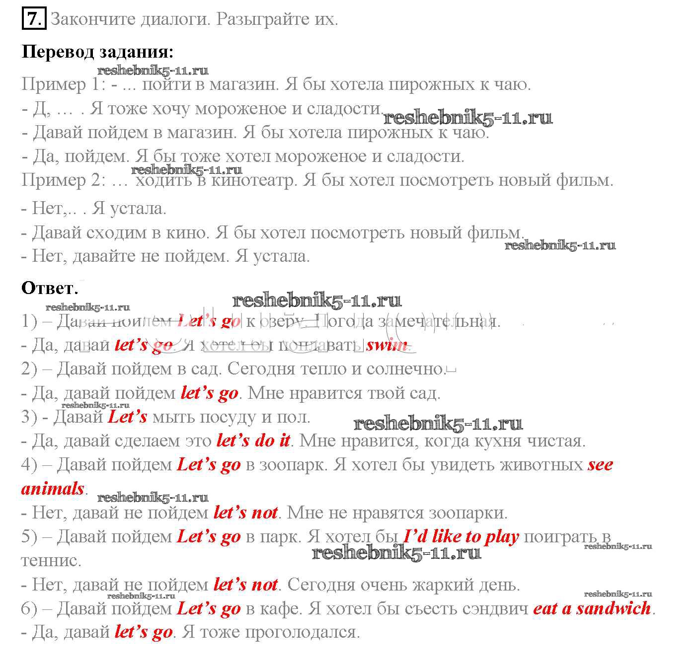 Готовая домашняя работа с ответами по Английскому языку за 5 класс Афанасьева, Михеева, Баранова Учебник Rainbow Часть 1, 2 Дрофа 2017 ФГОС - Step 4 7