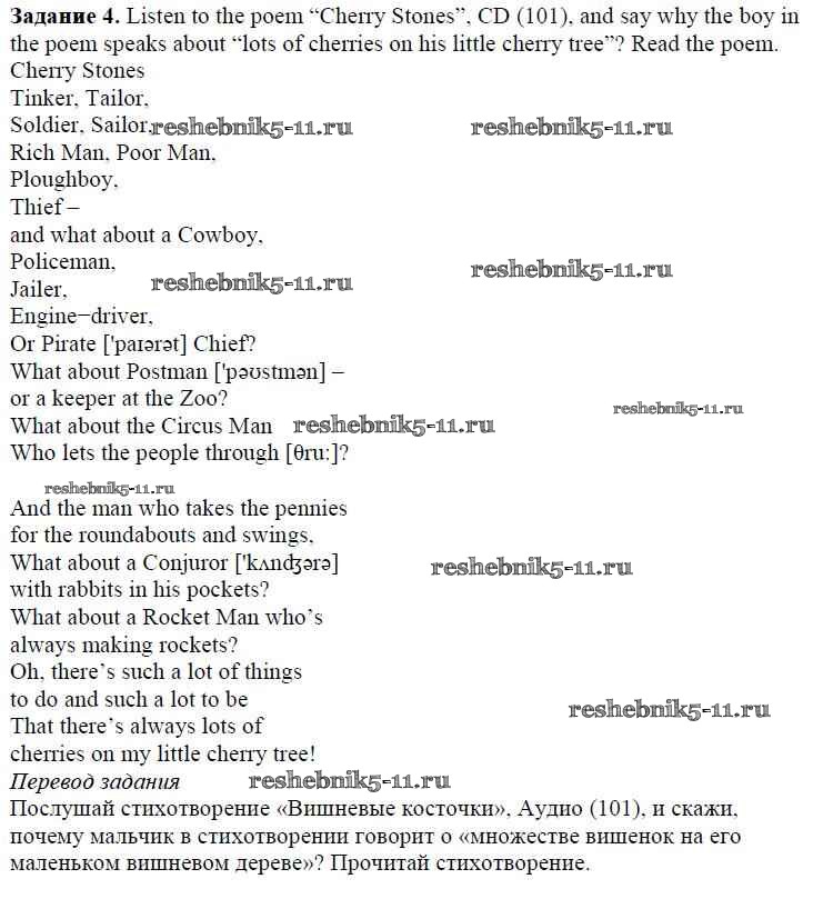 Готовая домашняя работа с ответами по Английскому языку за 5 класс Афанасьева, Михеева, Баранова Учебник Rainbow Часть 1, 2 Дрофа 2017 ФГОС - Step 10. Enjoy Yourself 4