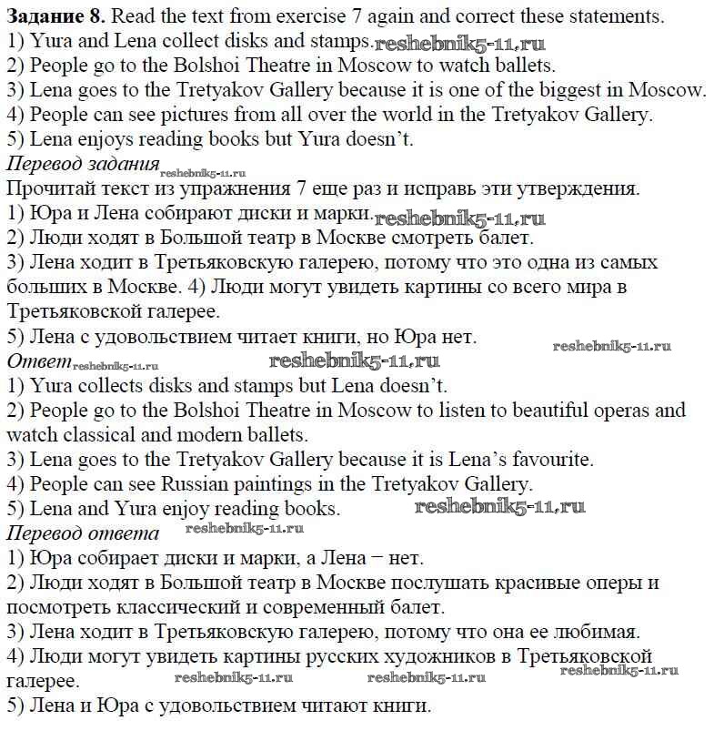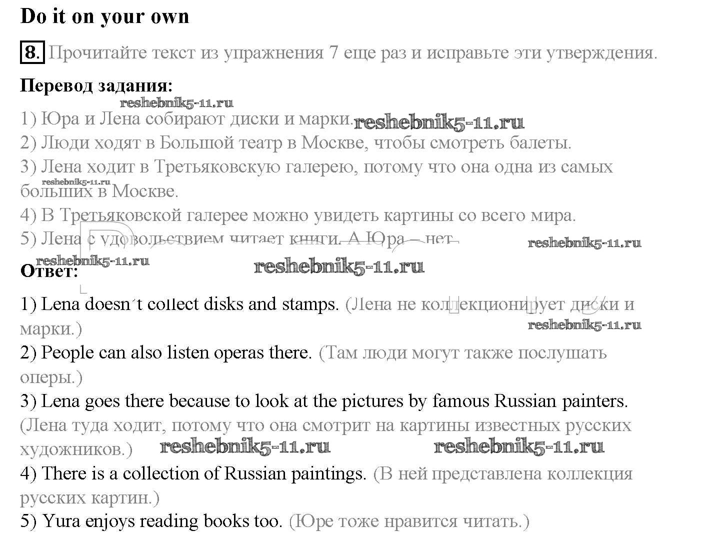 Готовая домашняя работа с ответами по Английскому языку за 5 класс Афанасьева, Михеева, Баранова Учебник Rainbow Часть 1, 2 Дрофа 2017 ФГОС - Step 5 8
