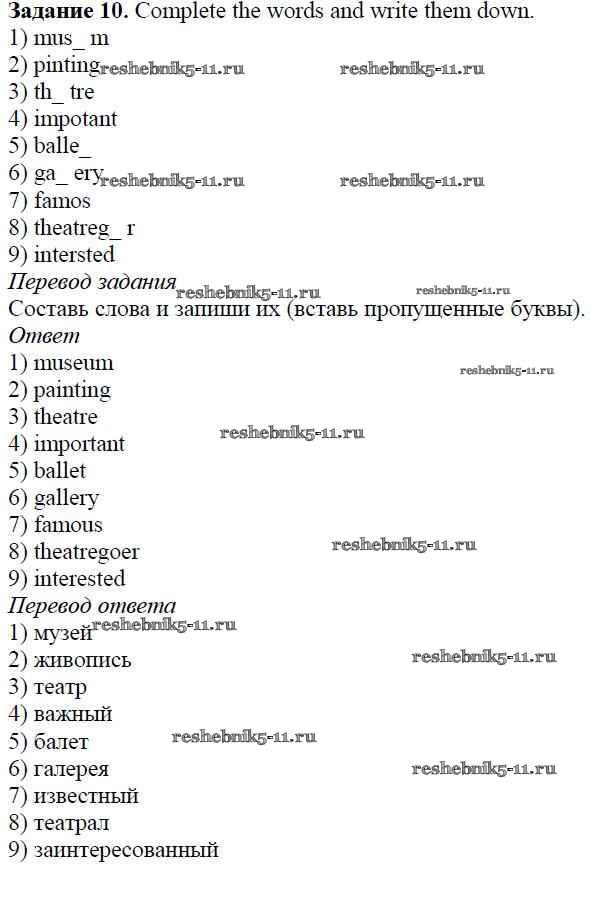 Готовая домашняя работа с ответами по Английскому языку за 5 класс Афанасьева, Михеева, Баранова Учебник Rainbow Часть 1, 2 Дрофа 2017 ФГОС - Step 6 10