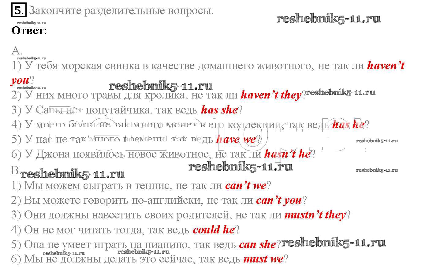 Готовая домашняя работа с ответами по Английскому языку за 5 класс Афанасьева, Михеева, Баранова Учебник Rainbow Часть 1, 2 Дрофа 2017 ФГОС - Step 6 5