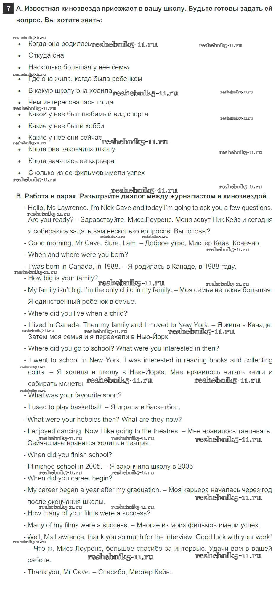 Готовая домашняя работа с ответами по Английскому языку за 5 класс Афанасьева, Михеева, Баранова Учебник Rainbow Часть 1, 2 Дрофа 2017 ФГОС - Step 6 7