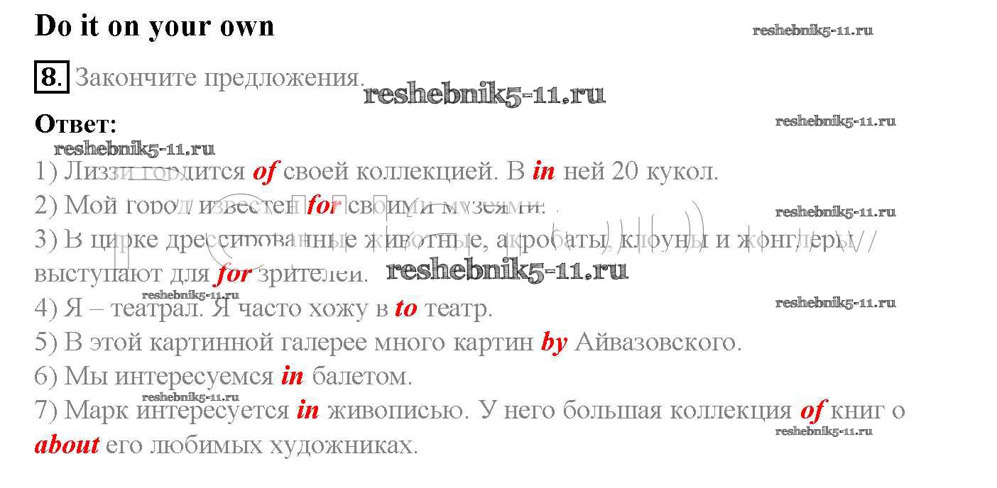 Готовая домашняя работа с ответами по Английскому языку за 5 класс Афанасьева, Михеева, Баранова Учебник Rainbow Часть 1, 2 Дрофа 2017 ФГОС - Step 8. Round-up 8