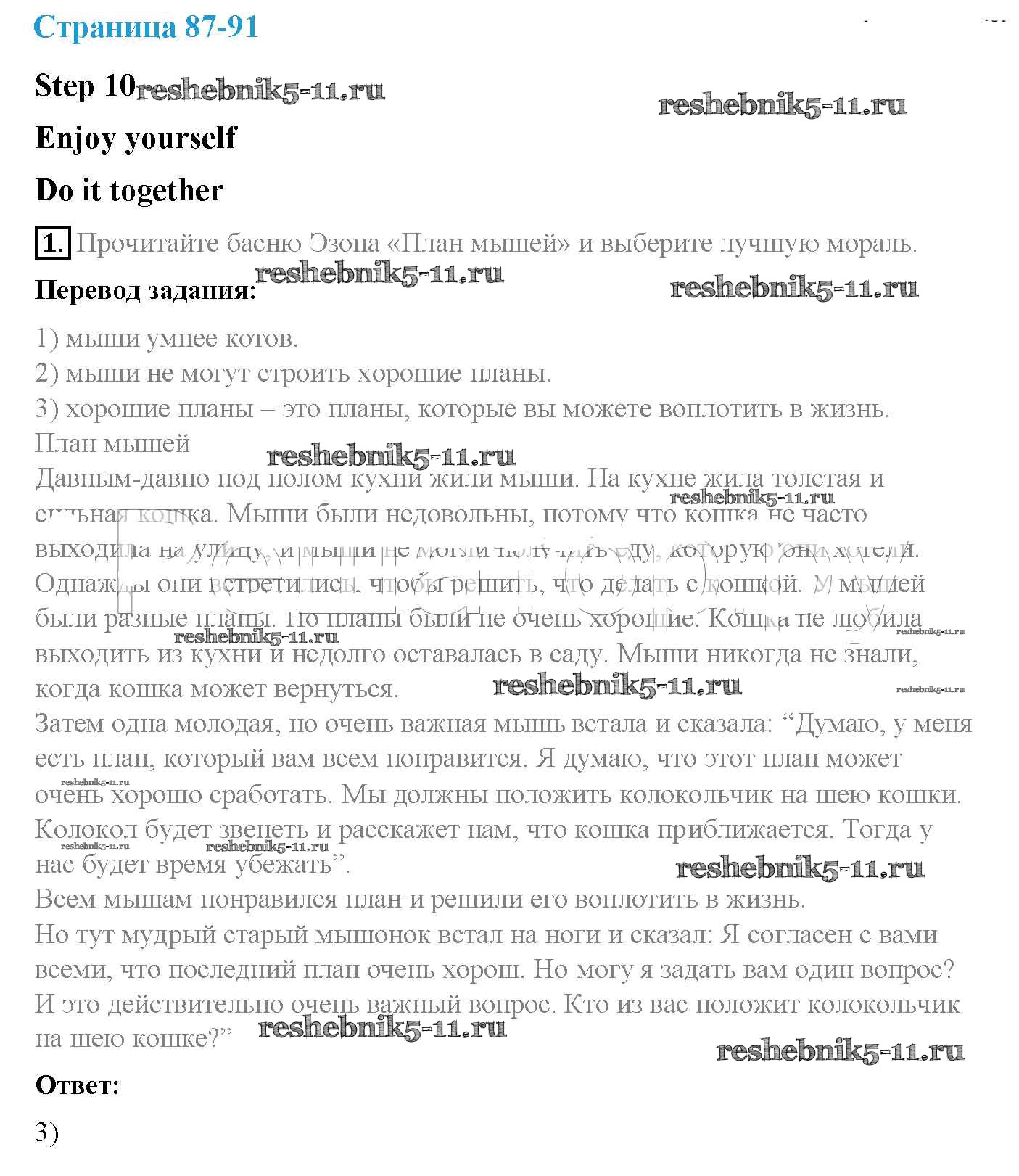 Готовая домашняя работа с ответами по Английскому языку за 5 класс Афанасьева, Михеева, Баранова Учебник Rainbow Часть 1, 2 Дрофа 2017 ФГОС - Step 10. Enjoy Yourself 1