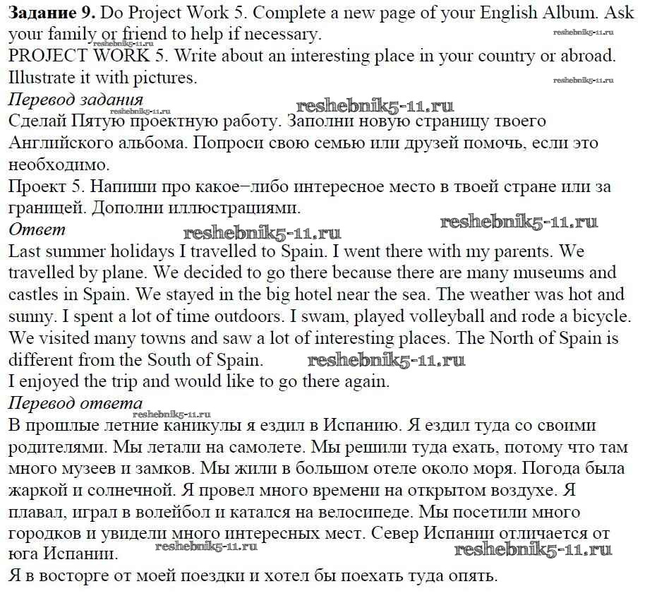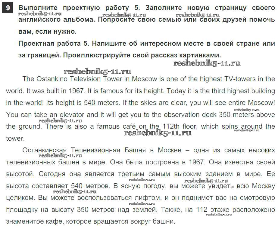 Готовая домашняя работа с ответами по Английскому языку за 5 класс Афанасьева, Михеева, Баранова Учебник Rainbow Часть 1, 2 Дрофа 2017 ФГОС - Step 10. Enjoy Yourself 9