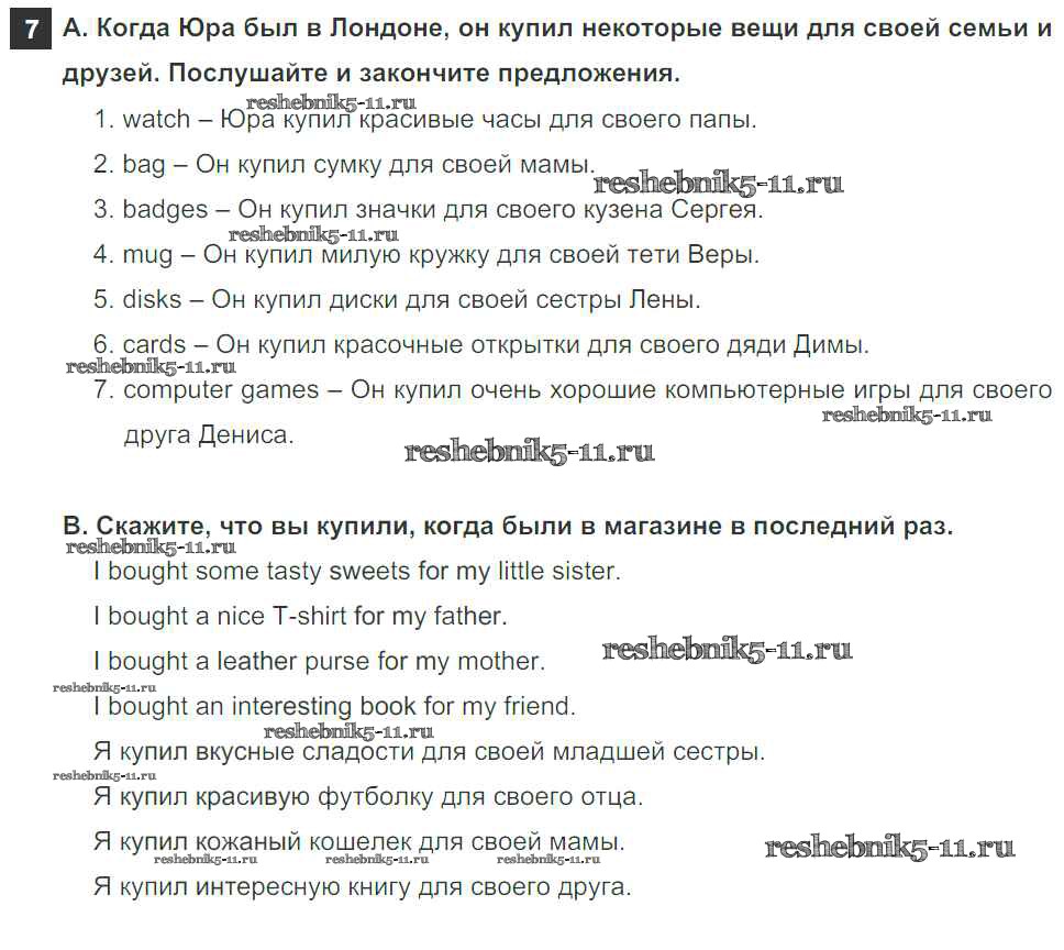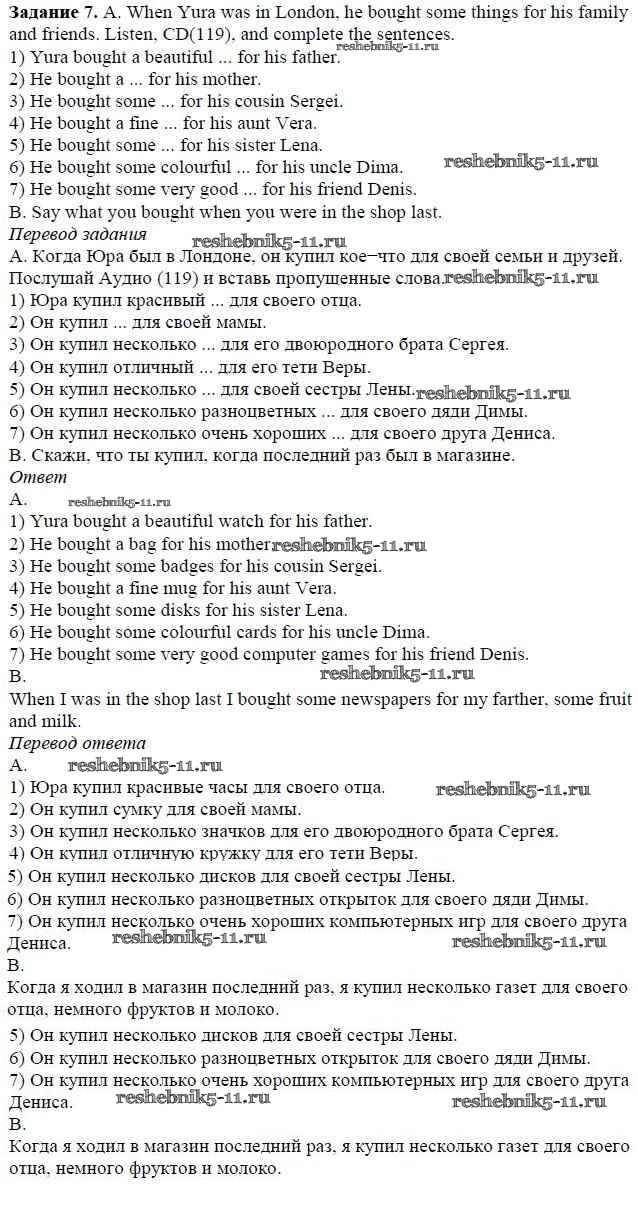 Готовая домашняя работа с ответами по Английскому языку за 5 класс Афанасьева, Михеева, Баранова Учебник Rainbow Часть 1, 2 Дрофа 2017 ФГОС - Step 7 7