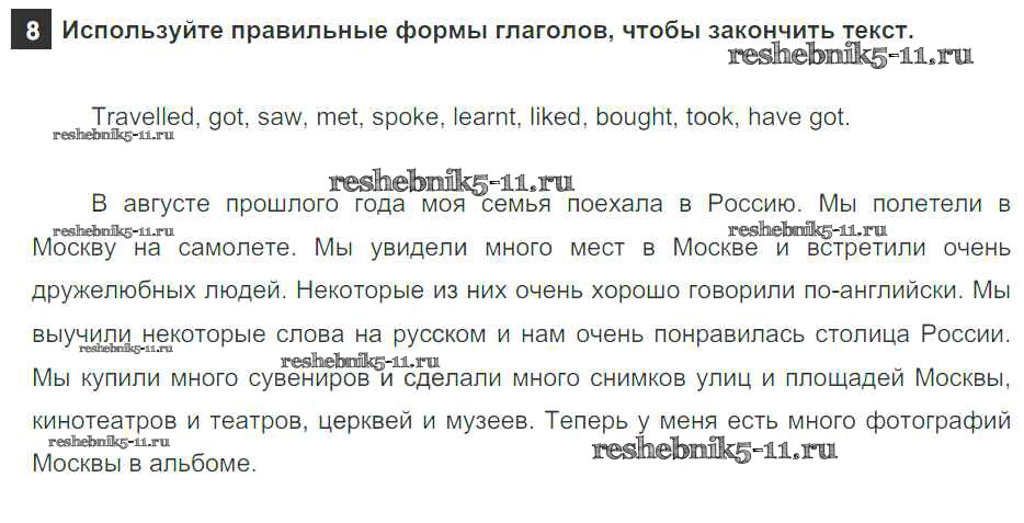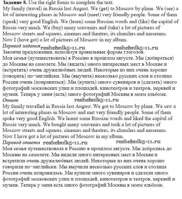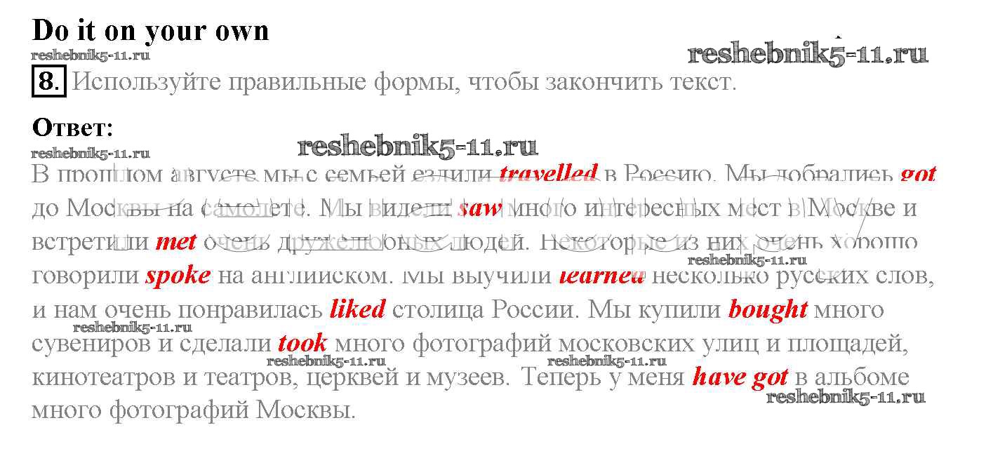 Готовая домашняя работа с ответами по Английскому языку за 5 класс Афанасьева, Михеева, Баранова Учебник Rainbow Часть 1, 2 Дрофа 2017 ФГОС - Step 8. Round-up 8