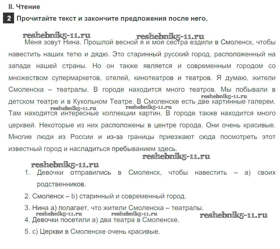 Готовая домашняя работа с ответами по Английскому языку за 5 класс Афанасьева, Михеева, Баранова Учебник Rainbow Часть 1, 2 Дрофа 2017 ФГОС - Step 9. Test Yourself 2