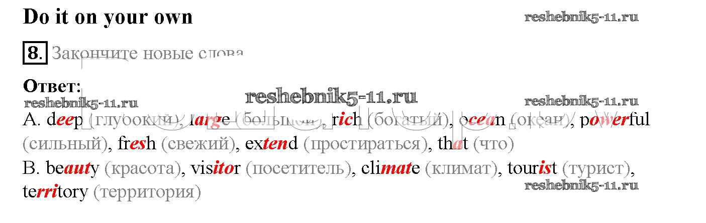 Готовая домашняя работа с ответами по Английскому языку за 5 класс Афанасьева, Михеева, Баранова Учебник Rainbow Часть 1, 2 Дрофа 2017 ФГОС - Step 1 8