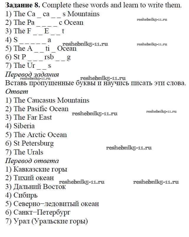 Готовая домашняя работа с ответами по Английскому языку за 5 класс Афанасьева, Михеева, Баранова Учебник Rainbow Часть 1, 2 Дрофа 2017 ФГОС - Step 3 8