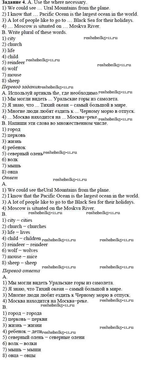 Готовая домашняя работа с ответами по Английскому языку за 5 класс Афанасьева, Михеева, Баранова Учебник Rainbow Часть 1, 2 Дрофа 2017 ФГОС - Step 9. Test Yourself 4