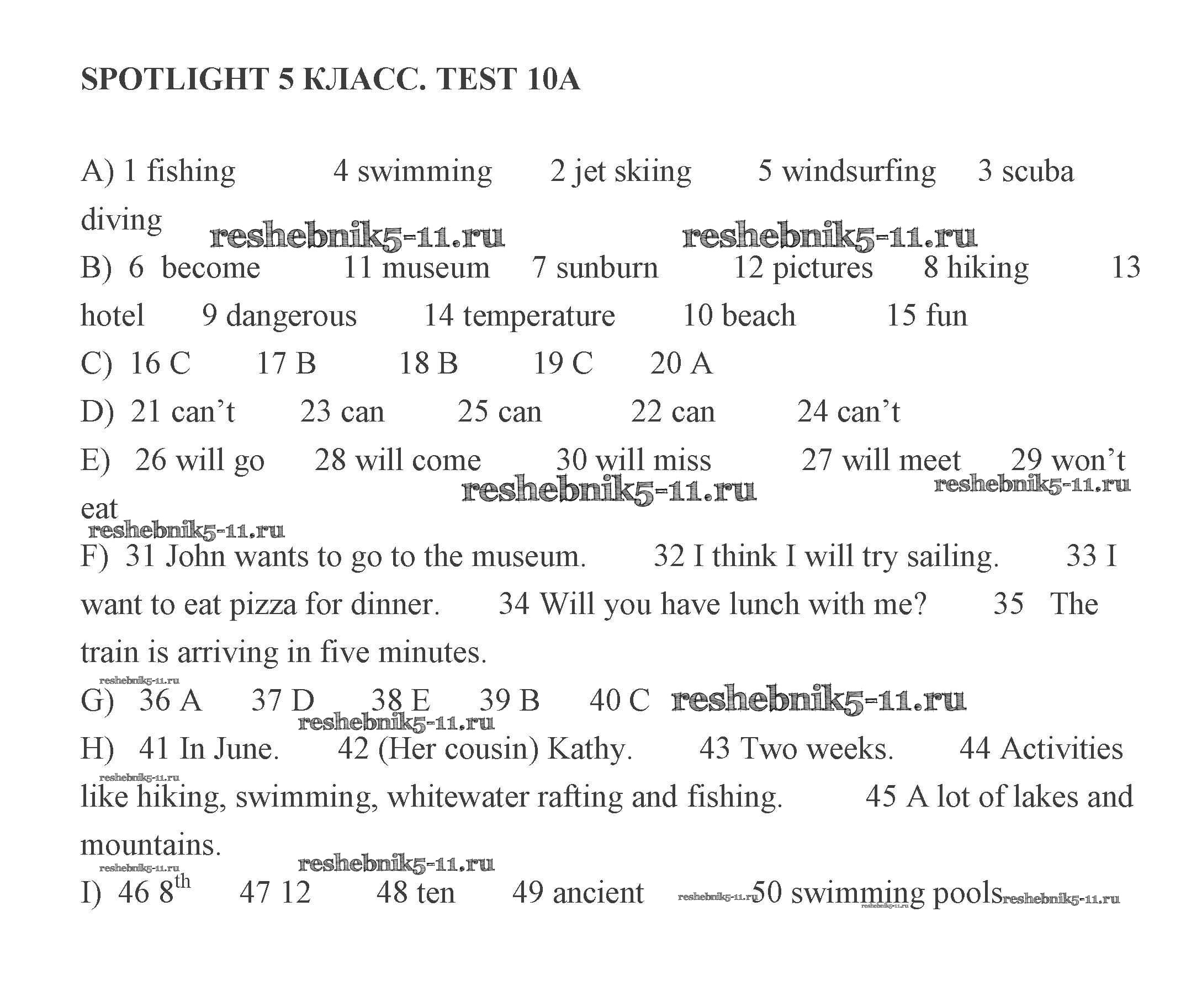 Готовая домашняя работа с ответами по Английскому языку за 5 класс Ваулина, Дули, Подоляко, Эванс Контрольные задания Spotlight Просвещение 2018 - Тест 10 (Варианты) 1