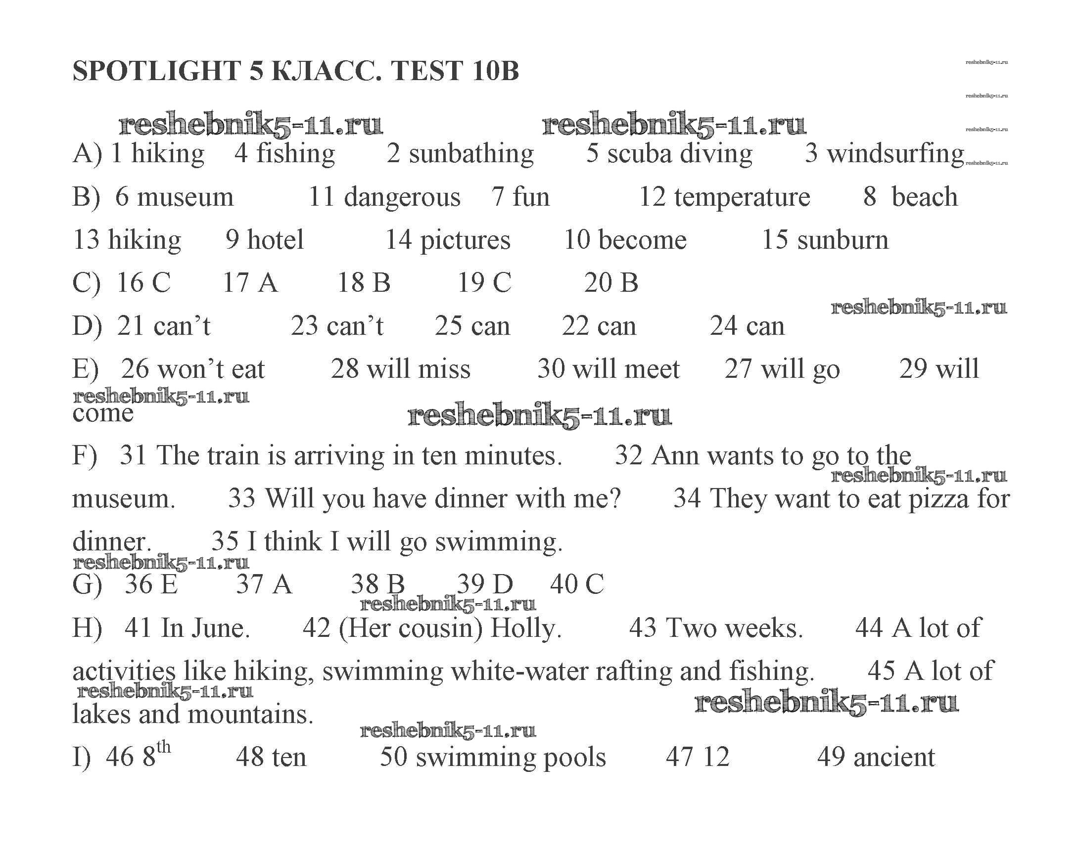 Готовая домашняя работа с ответами по Английскому языку за 5 класс Ваулина, Дули, Подоляко, Эванс Контрольные задания Spotlight Просвещение 2018 - Тест 10 (Варианты) 2