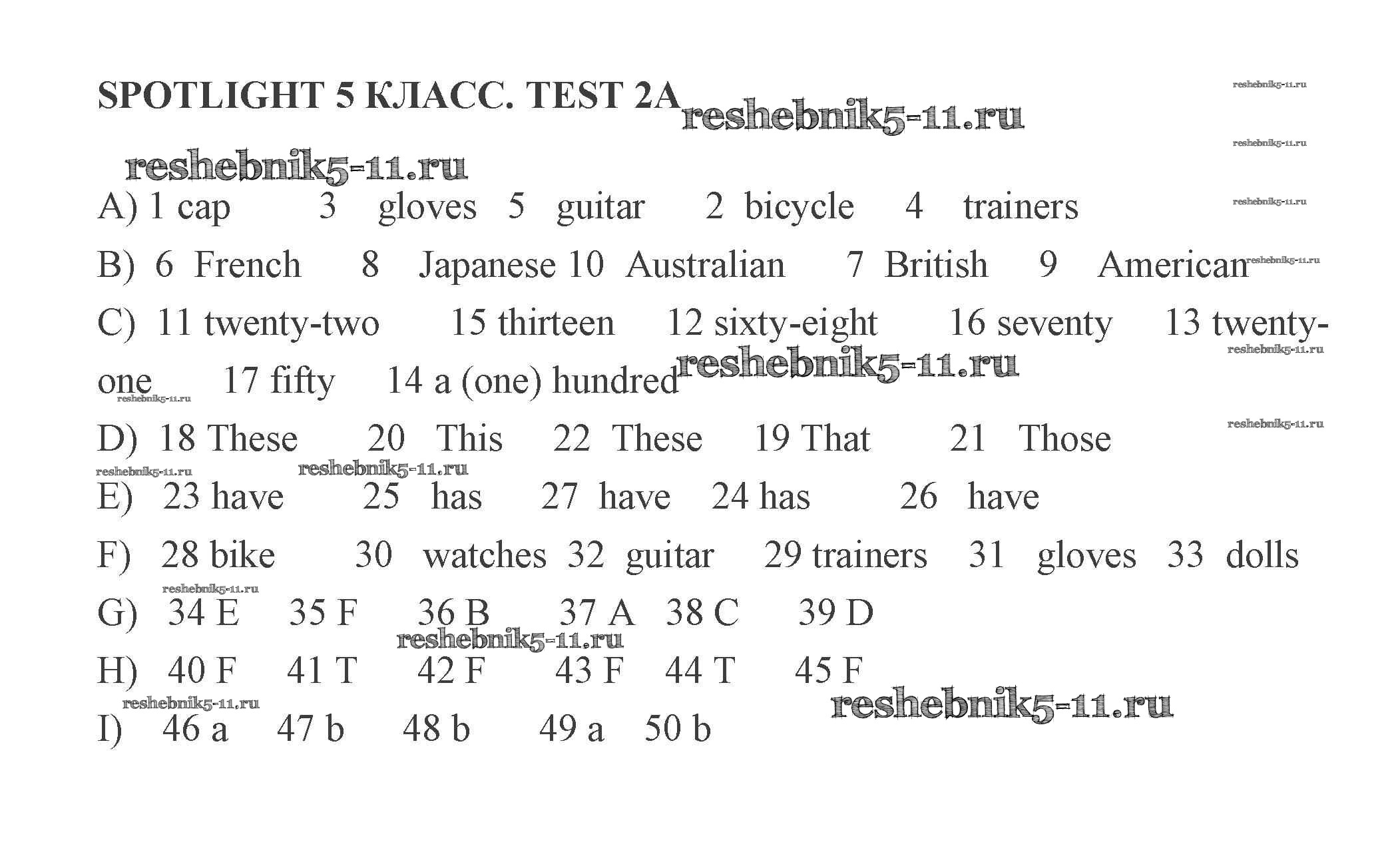 Готовая домашняя работа с ответами по Английскому языку за 5 класс Ваулина, Дули, Подоляко, Эванс Контрольные задания Spotlight Просвещение 2018 - Тест 2 (Варианты) 1