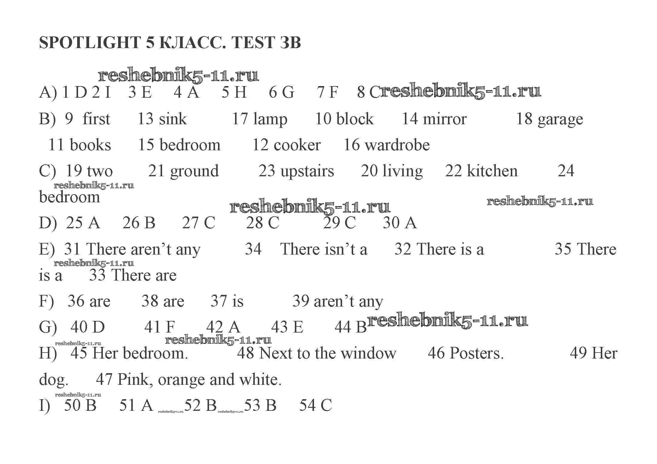 Готовая домашняя работа с ответами по Английскому языку за 5 класс Ваулина, Дули, Подоляко, Эванс Контрольные задания Spotlight Просвещение 2018 - Тест 3 (Варианты) 2