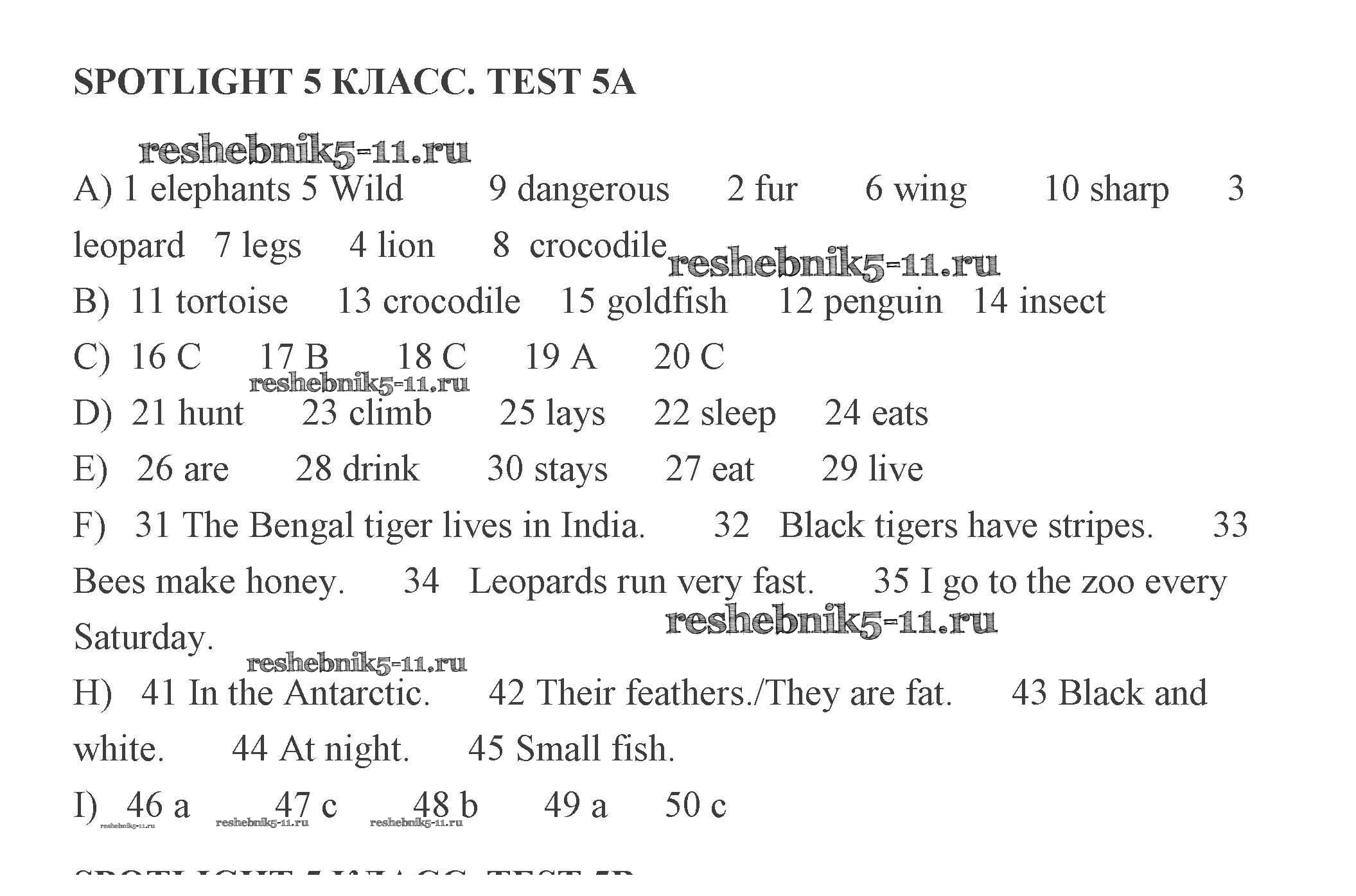 Готовая домашняя работа с ответами по Английскому языку за 5 класс Ваулина, Дули, Подоляко, Эванс Контрольные задания Spotlight Просвещение 2018 - Тест 5 (Варианты) 1