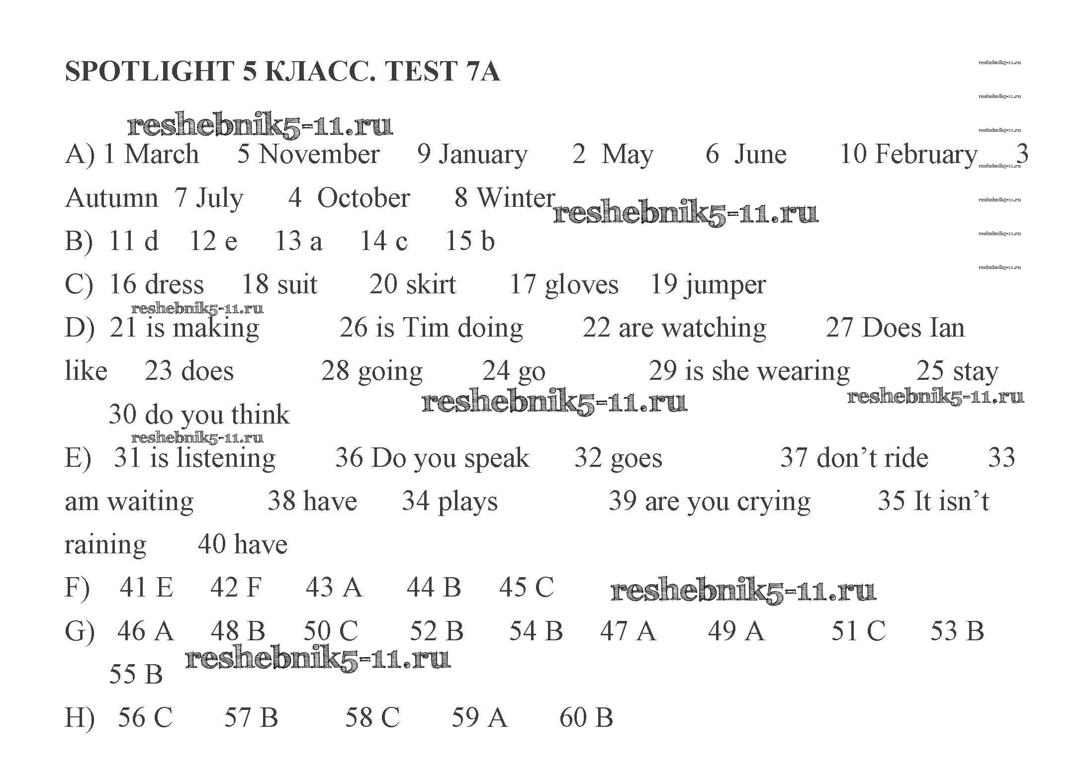 Готовая домашняя работа с ответами по Английскому языку за 5 класс Ваулина, Дули, Подоляко, Эванс Контрольные задания Spotlight Просвещение 2018 - Тест 7 (Варианты) 1