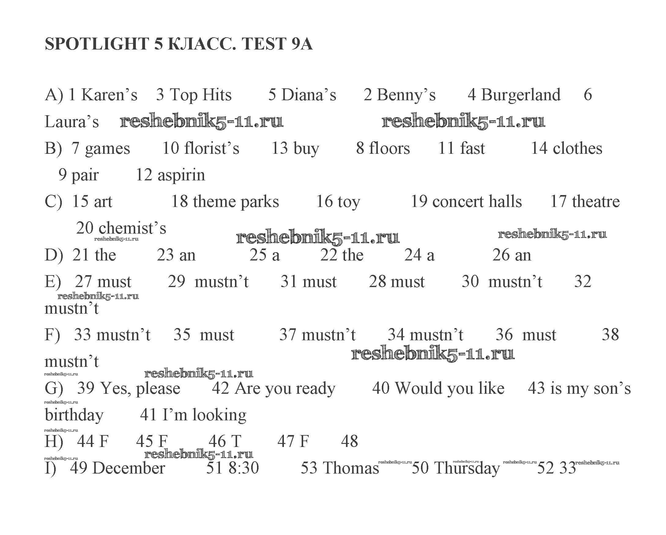 Готовая домашняя работа с ответами по Английскому языку за 5 класс Ваулина, Дули, Подоляко, Эванс Контрольные задания Spotlight Просвещение 2018 - Тест 9 (Варианты) 1