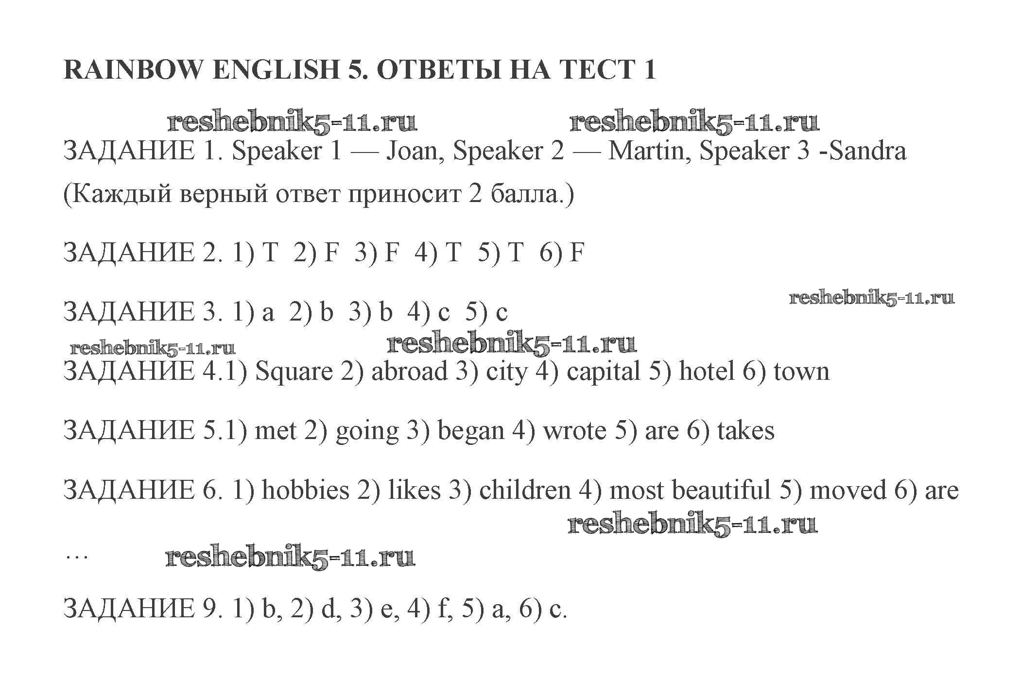 Готовая домашняя работа с ответами по Английскому языку за 5 класс Афанасьева, Михеева, Колесникова Диагностические работы Rainbow Дрофа 2019 ФГОС - Тесты 1