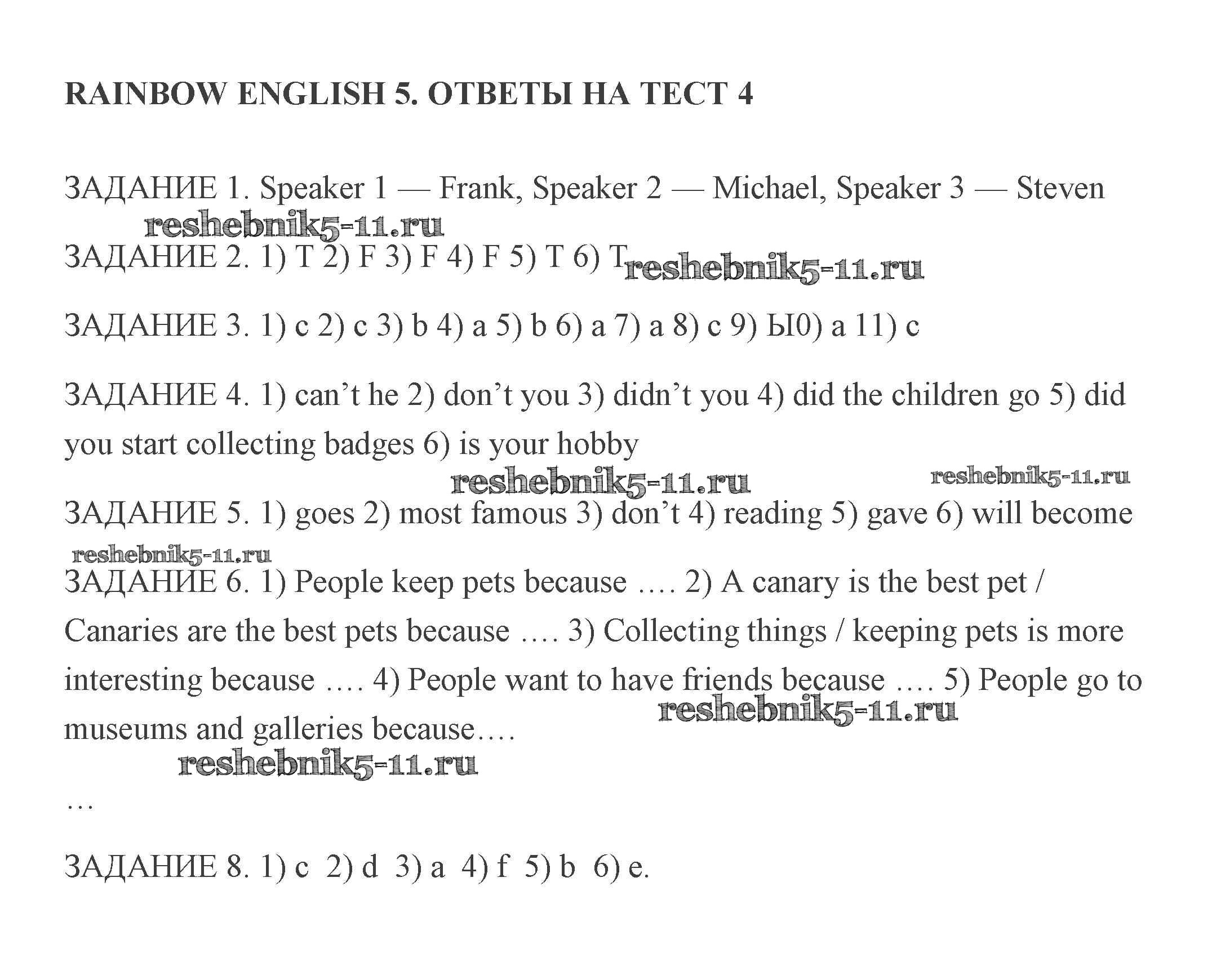 Готовая домашняя работа с ответами по Английскому языку за 5 класс Афанасьева, Михеева, Колесникова Диагностические работы Rainbow Дрофа 2019 ФГОС - Тесты 4