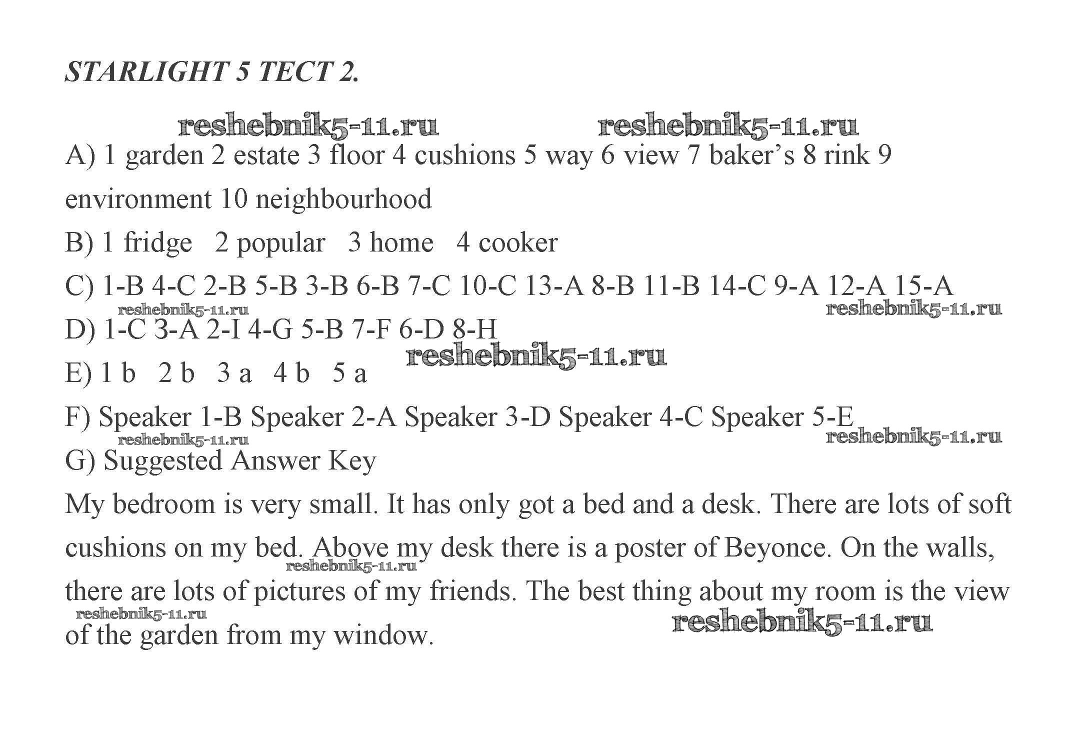 Готовая домашняя работа с ответами по Английскому языку за 5 класс Баранова, Дули, Эванс, Копылова, Мильруд Контрольные задания Starlight Углубленный уровень Просвещение 2017 - Тесты 2