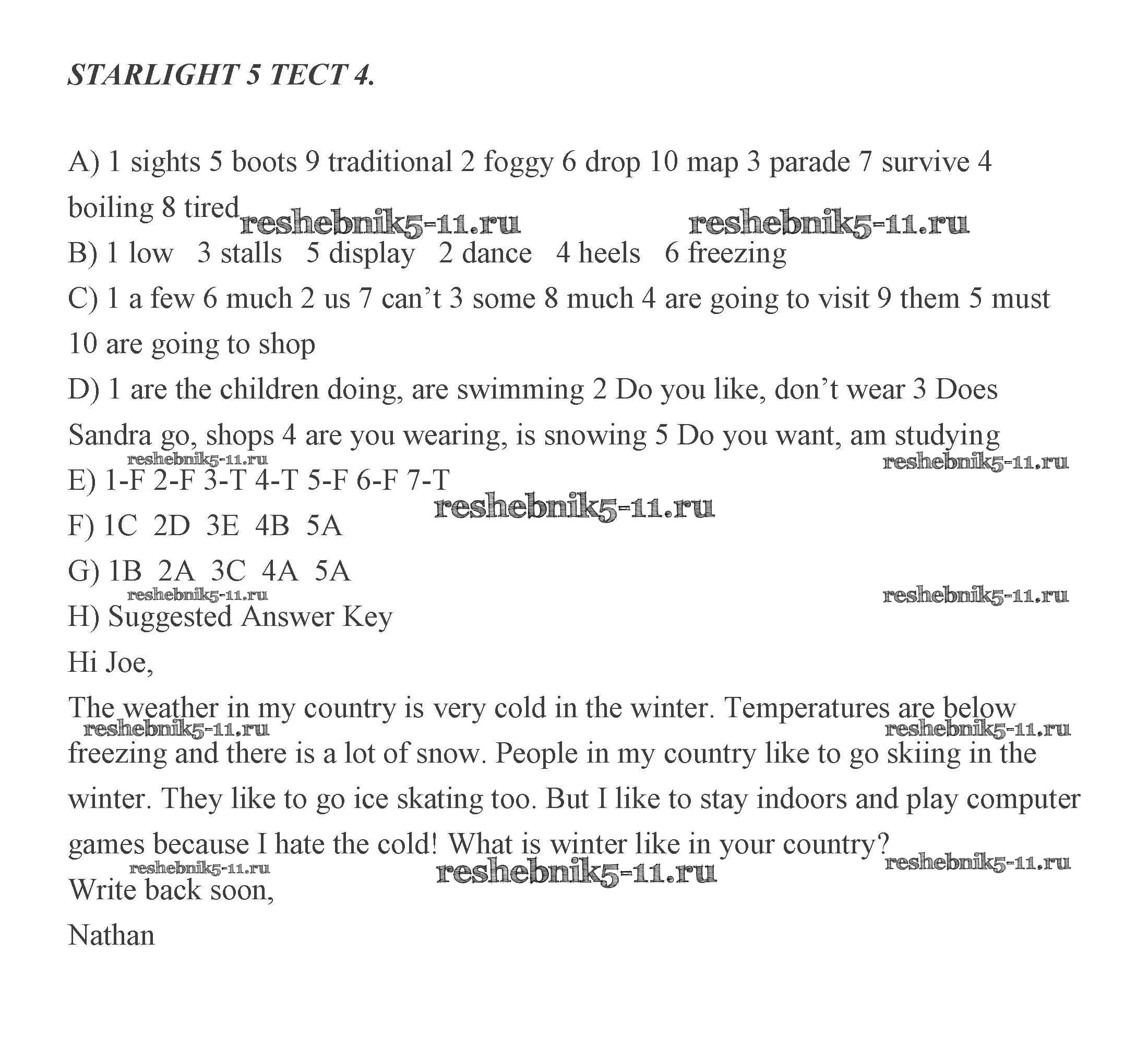 Готовая домашняя работа с ответами по Английскому языку за 5 класс Баранова, Дули, Эванс, Копылова, Мильруд Контрольные задания Starlight Углубленный уровень Просвещение 2017 - Тесты 4