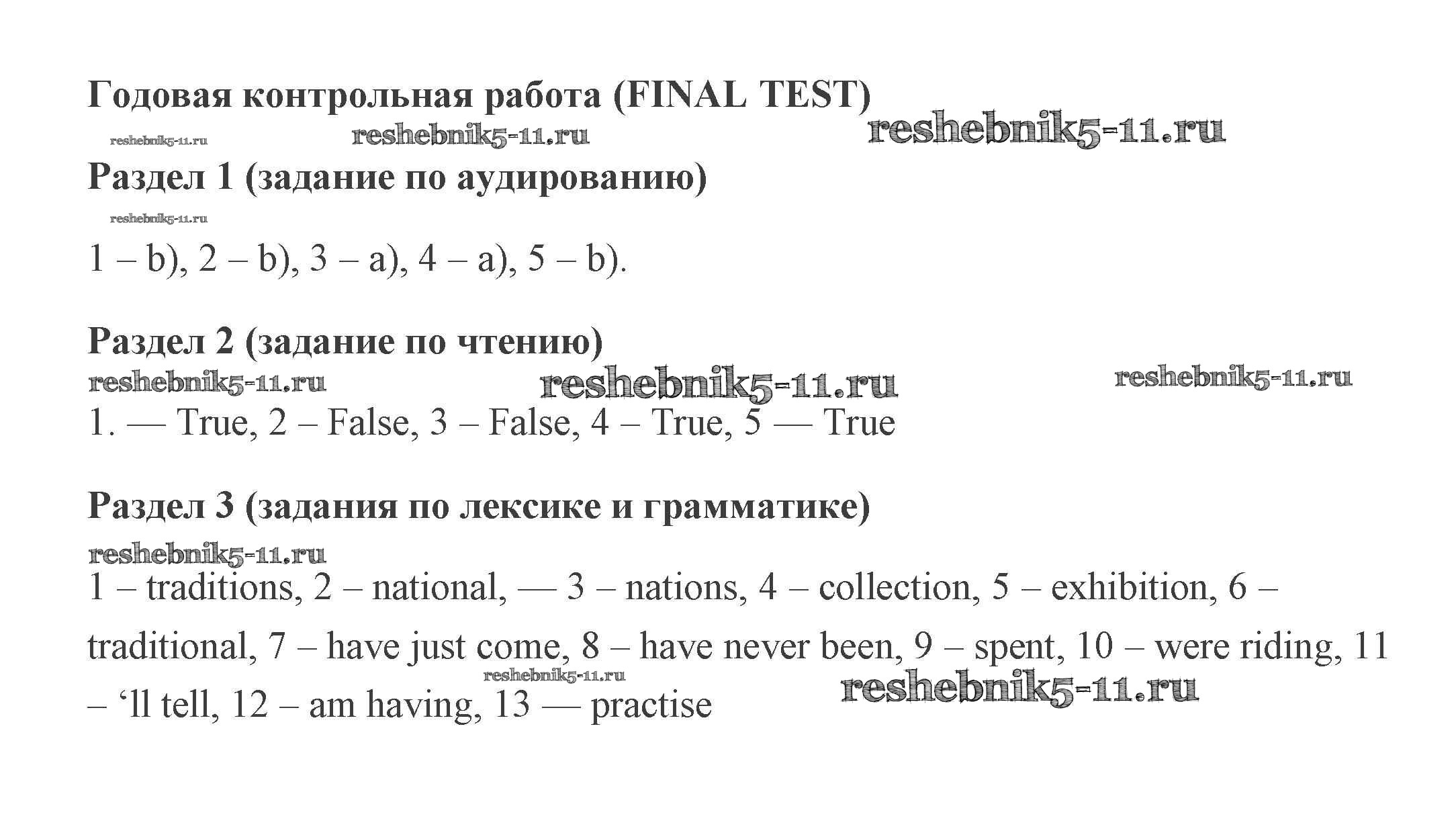Готовая домашняя работа с ответами по Английскому языку за 5 класс Кузовлев, Симкин, Лапа Контрольные задания Просвещение 2019 ФГОС - Terms Final Test