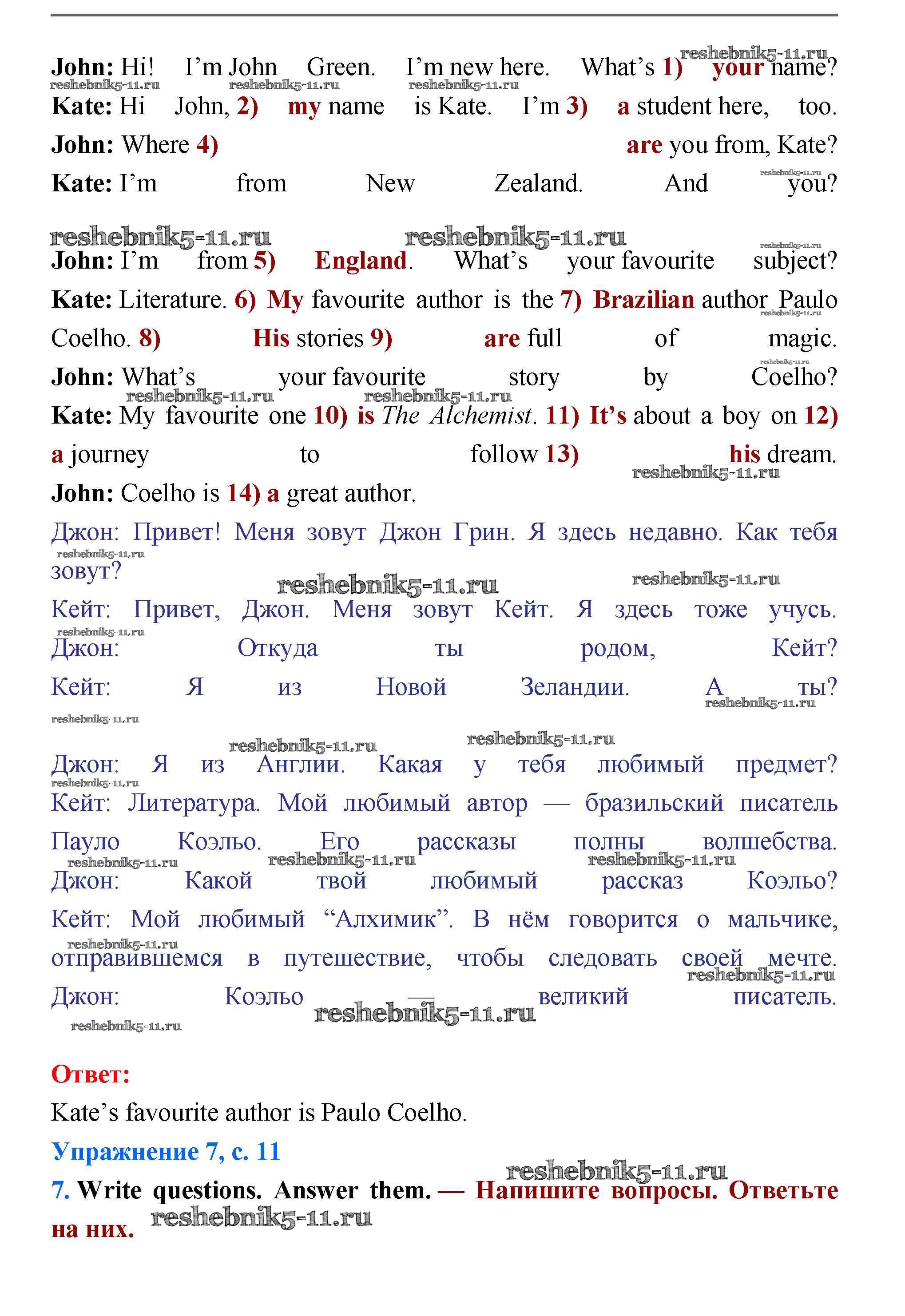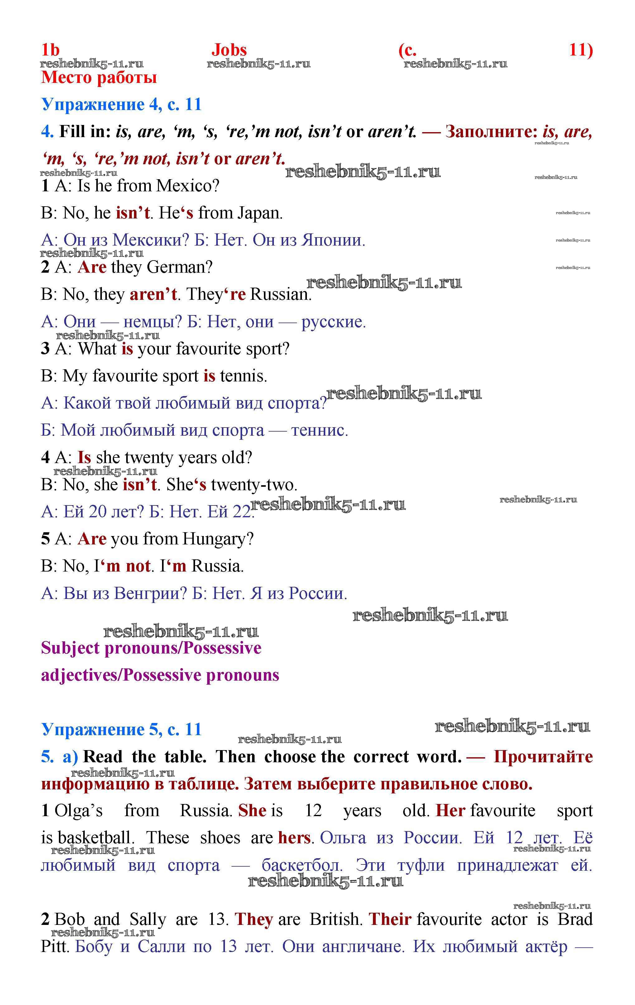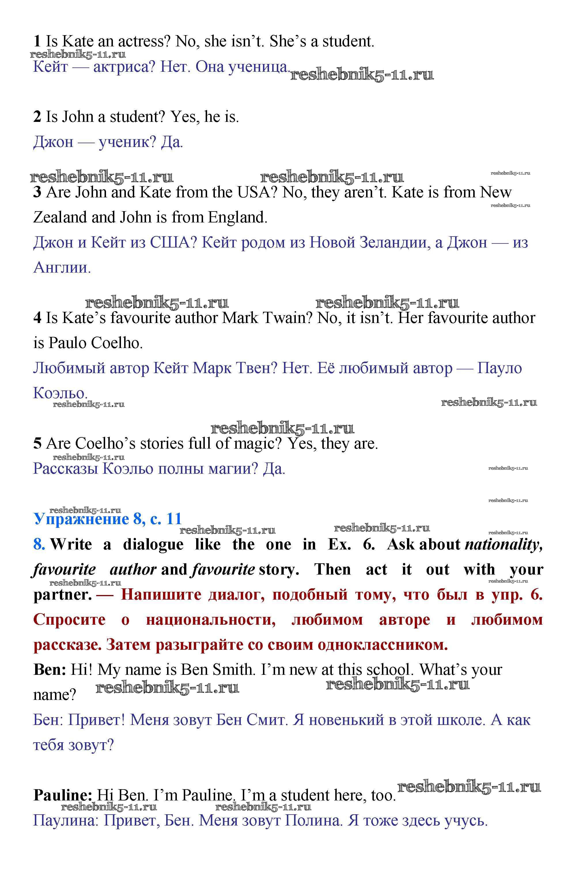 Готовая домашняя работа с ответами по Английскому языку за 5 класс Баранова, Эванс, Дули, Копылова, Мильруд Учебник Starlight Углубленный уровень Просвещение 2015 - Module 1. People around the world стр.11